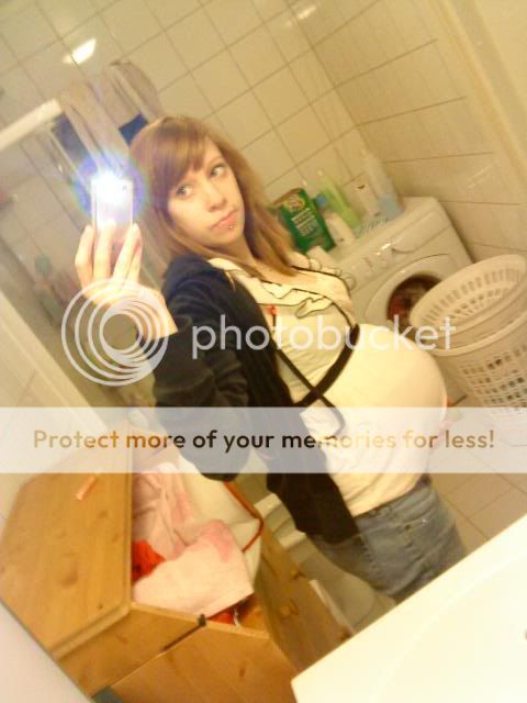 for en fantastisk fin mage.. [:)] du bærer veldig høyt enda. Da jeg var 36 uker føltes det ut som magen hang mede på knærne[:D]