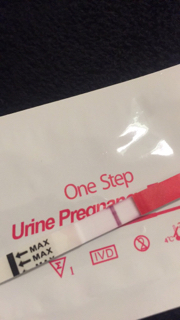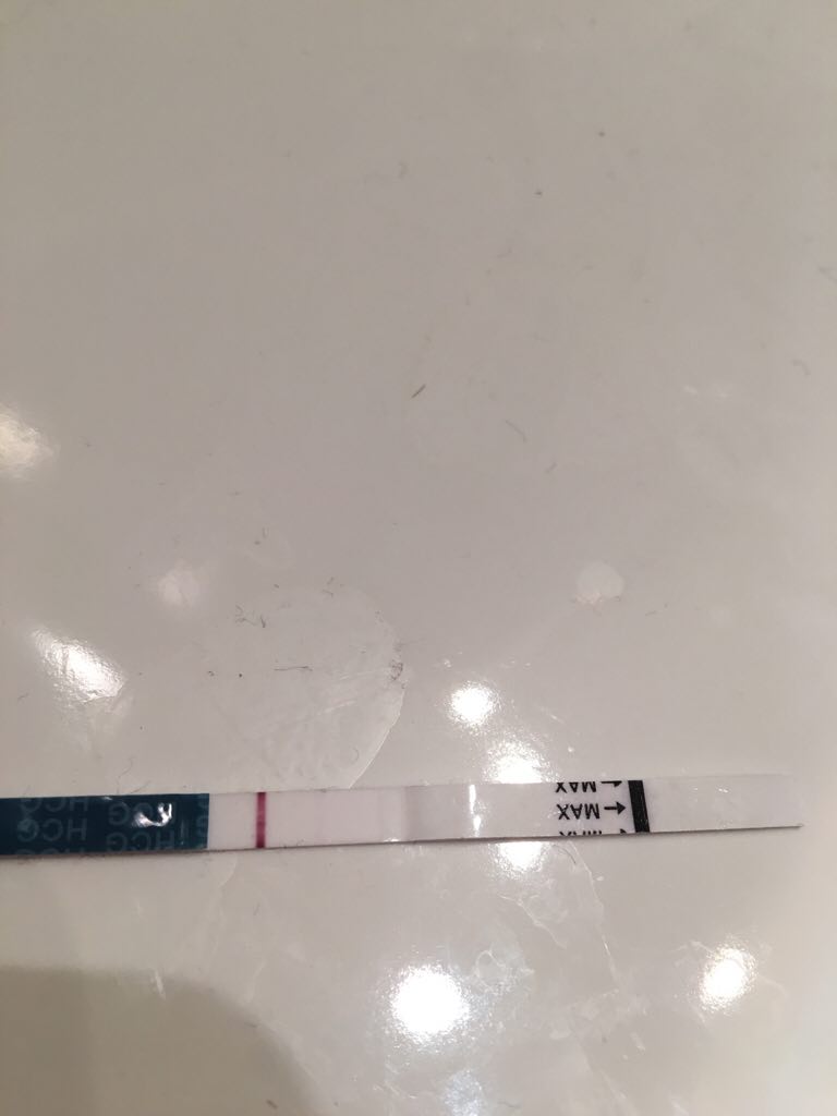 Igår kveld tok jeg en test på utvannet urin. Dag 11 etter ovitrelle. Det var nesten usynlig, men det var "noe" der. Veldig vanskelig å se men en strek er en strek.