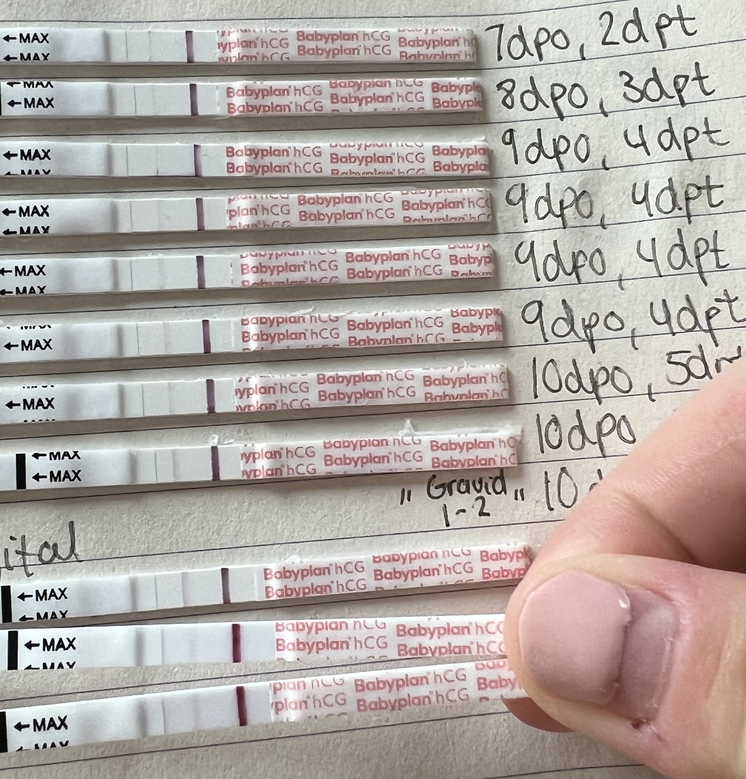 Ja, samme her. Mine var også mye svakere 9 og 10 DPO med en ubetydelig økning mellom de dagene. Var først fra 11/12 det ble en tydeligere økning fra dag til dag. :Heartpink