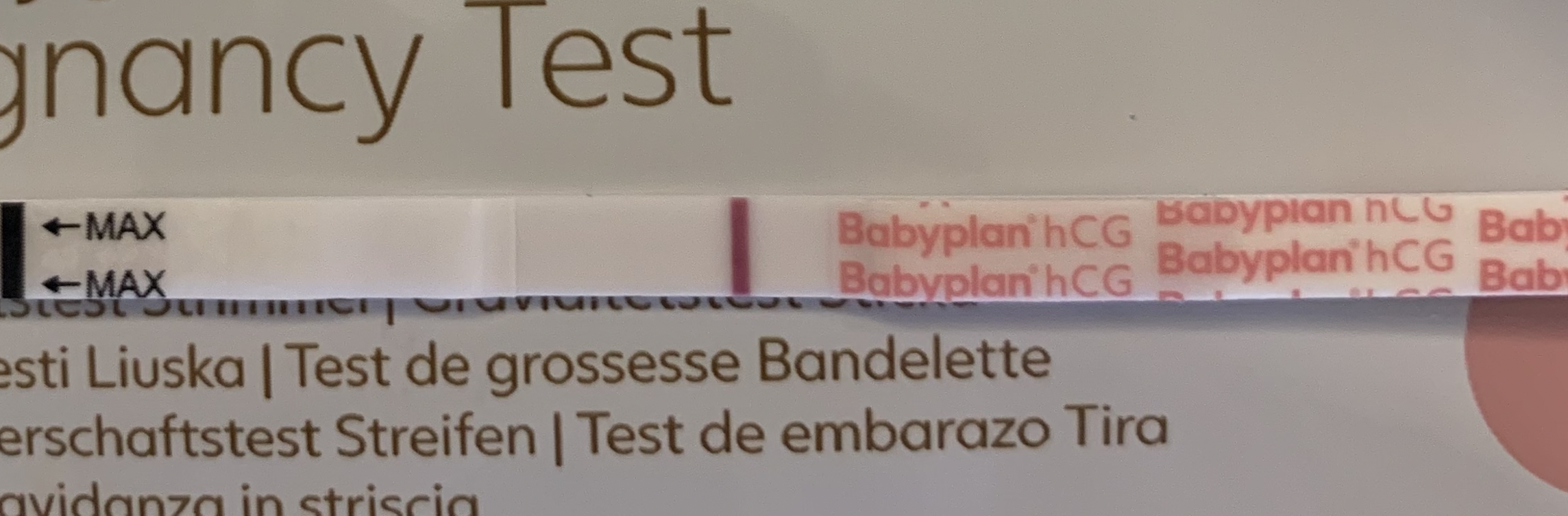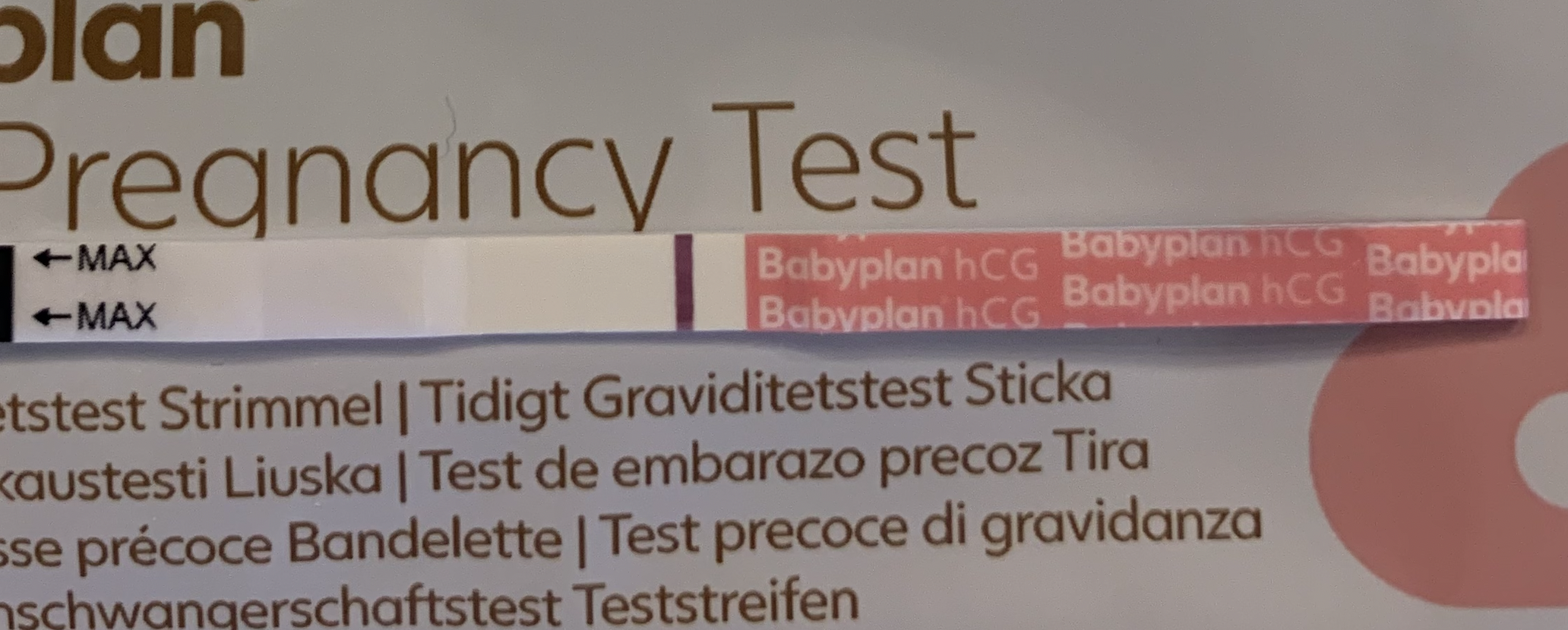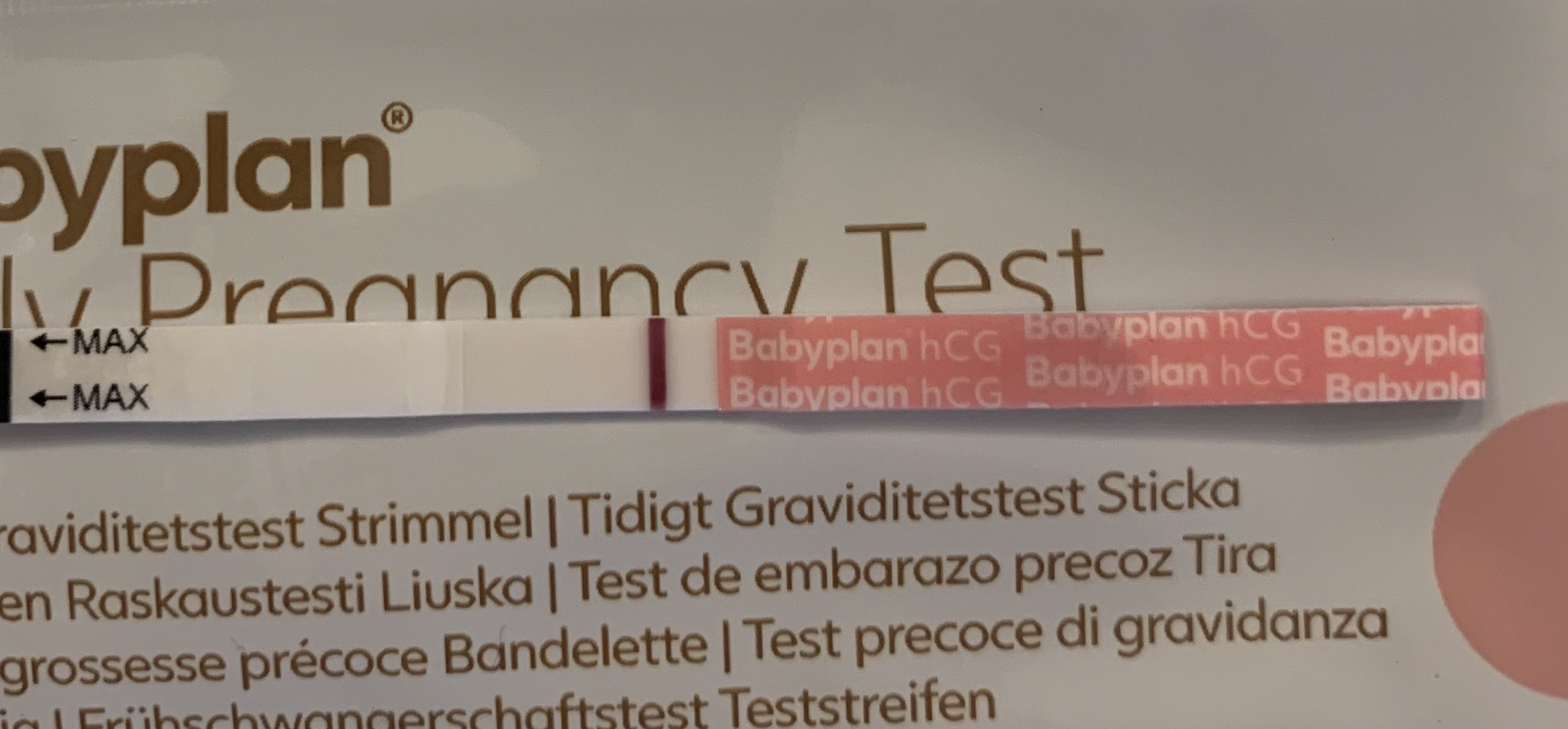 Tok først tempen, og så at den hadde gått ned litt.. Deretter løp jeg (eller løp og løp, SÅ våken var jeg ikke) på badet og tok den første graviditetstesten i PP11. Den var selvfølgelig negativ, og det var jeg egentlig forberedt på, så jeg kastet den rett i søpla og la meg igjen