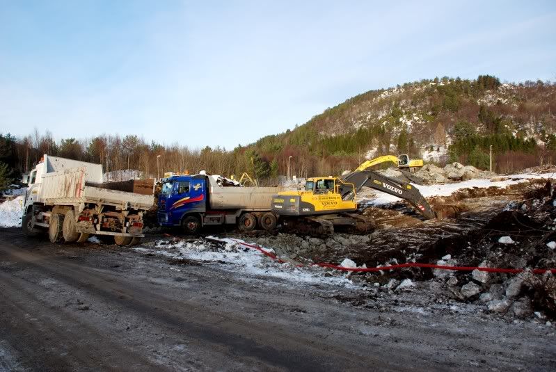 Tomtearbeidet som er gjort fra rett før jul til per dags dato. De skal planere 5 tomter så det er ikke bare våres :