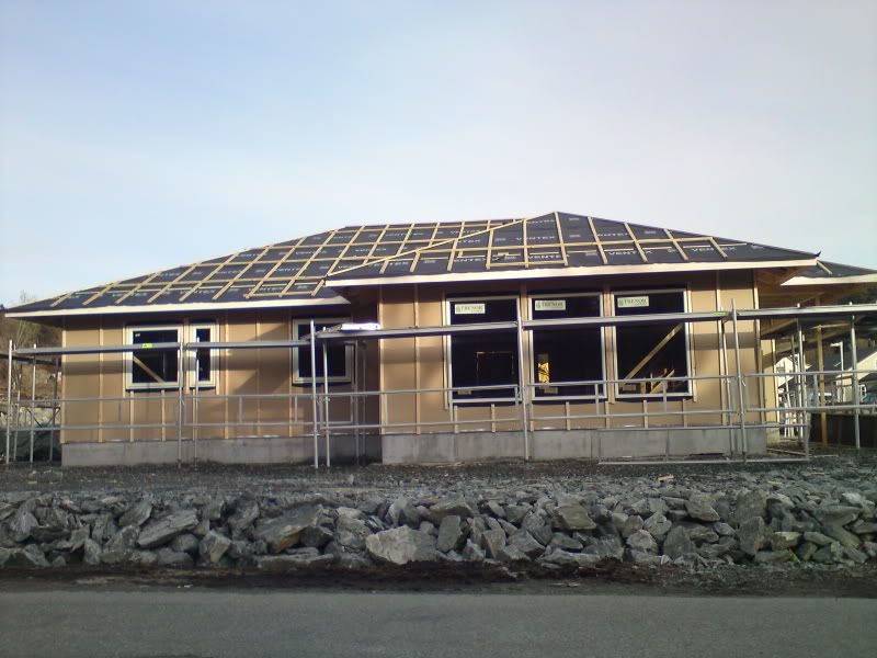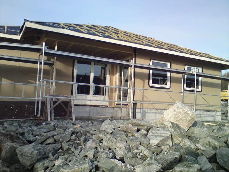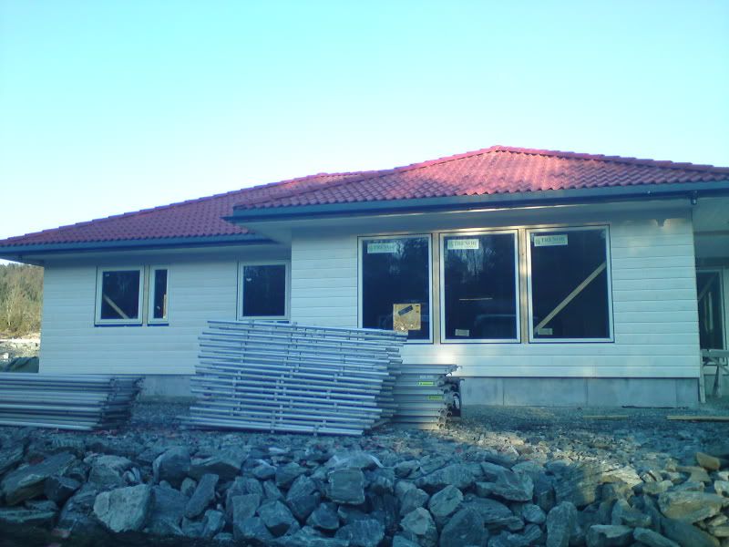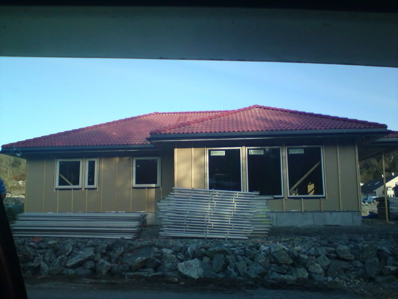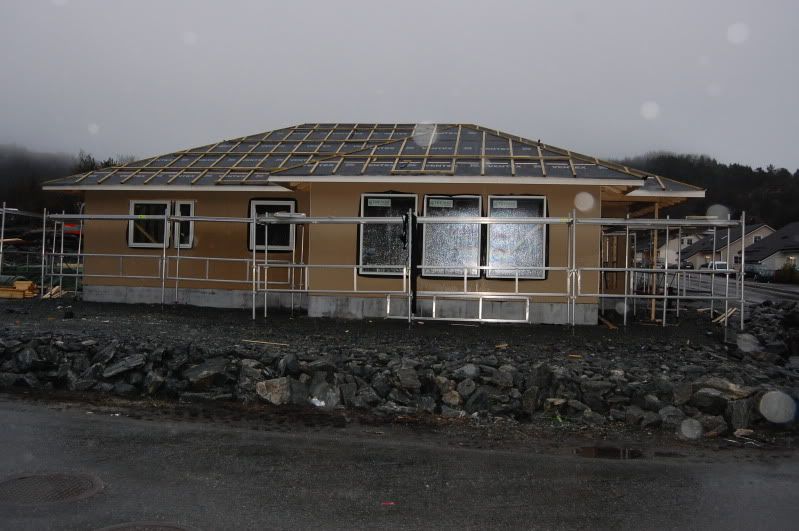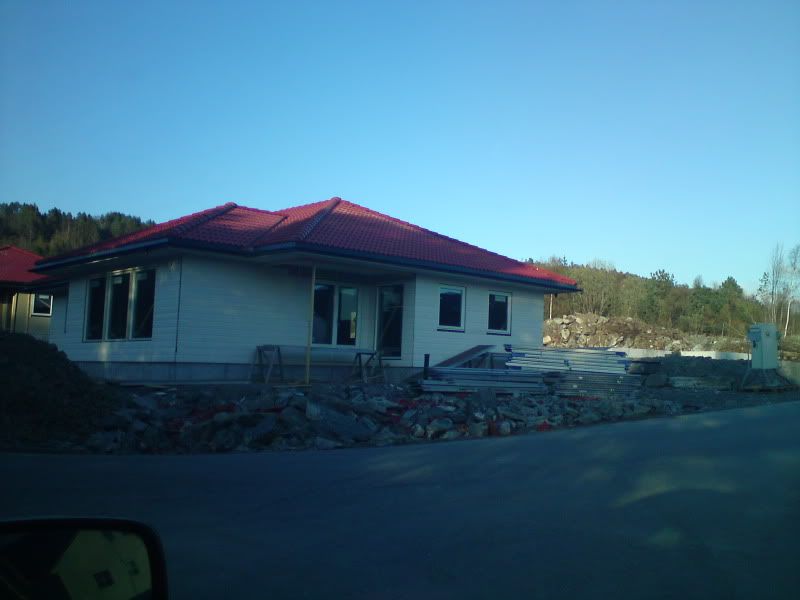 Var å såg på huset i går, no holder de på med lektene på taket for å få de ferdig så er det vel takstein next [;)].. tok ikke bilder siden det er lite oppdateringer fra forje bildelass.