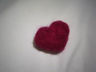 Her har jeg prøvd meg på ett ullhjerte, bildet får ikke fram helt, men det er ikke flatt.