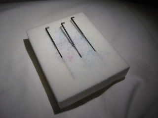 Ikke noe vanskelig egentlig.. Kjøpte liten startpakke på Panduro med tre nåler og plate i pakka. Ellers bruker du bare ullgarn eller ferdig "dotter" i pakke [;)]