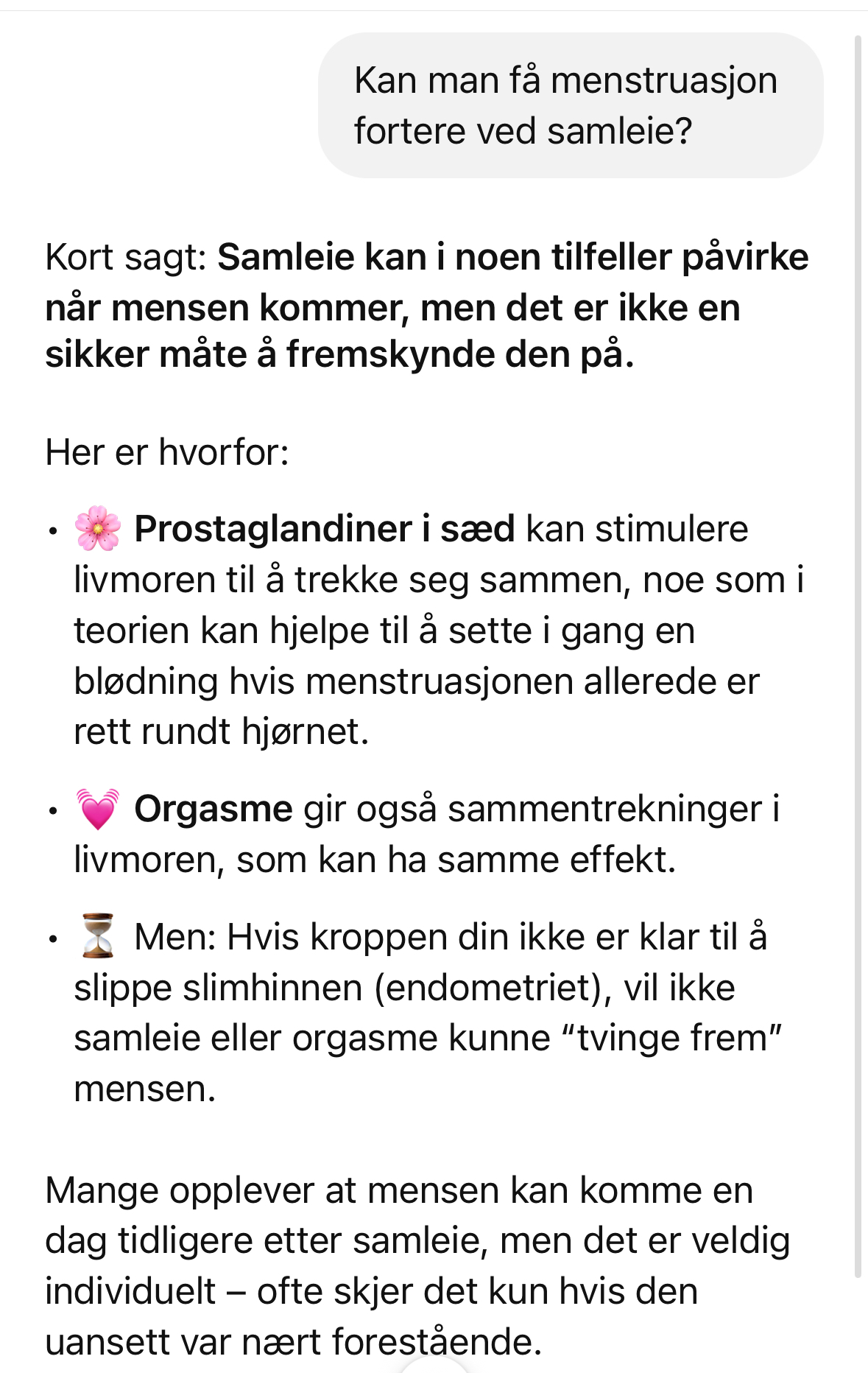 Chatgpt sier sammentrekning kan fremskynde menstruasjon, og det stemmer ofte med min opplevelse, men er selvsagt ingen garanti, men skader kanskje ikke å prøve?