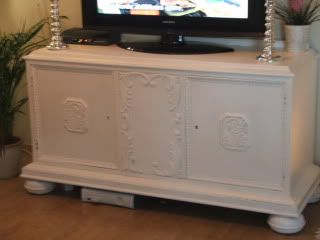 Vi har et sånt skap m/glass dører, som mannen har sotet dørene på- så man må ganske nærme for å se at det er fargerike dvd'er inni der [;)]