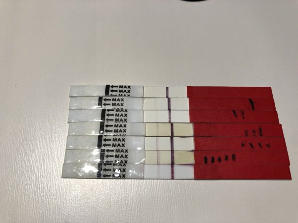 Neeeh, fikk denne i går 25mlu da jeg ikke hadde fler tidlig tester.... MEN hadde det vært reelle streker burde de ha blitt sterkere i løpet av denne tiden, så jeg slår meg til ro med skyggestreker å venter på tr.