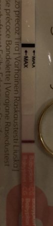 Jeg så en veeeldig svak strek innen fristen men avskrev det som skygge (stoler ikke på strek-synet mitt), men en time senere så den slik ut (se bilder)
