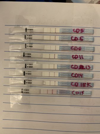 Eller denne var vel kanskje positiv? Teststreken ser jo sterkere ut en controll streken. Uansett legger vi inn aksjer og håper på det besteDenne er vel nesten positiv også? Monitoren sier høy enda. Men er første pp med den så regner ikke med å få maks![]()