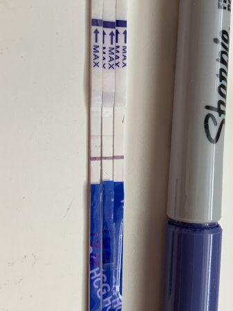 Den helt til venstre ser ut som sterkere enn de andre!Tok siste kinatesten min nå og synes kanskje det er øking fra i går? Uansett da så er den jo positiv!?!![]()
