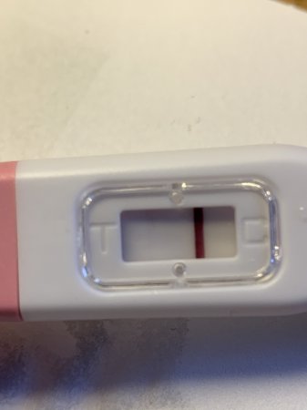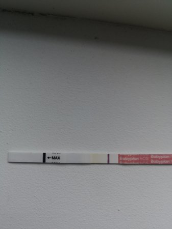 Test nå i ettermiddag. Hektiske dager. Føler dette er et kjemisk. Streken er svakere. Nesten usynelig. Blanda følelser kjenner jeg. Skal kjøpe med ukeindikator i morgen og så teste på morgenurin.