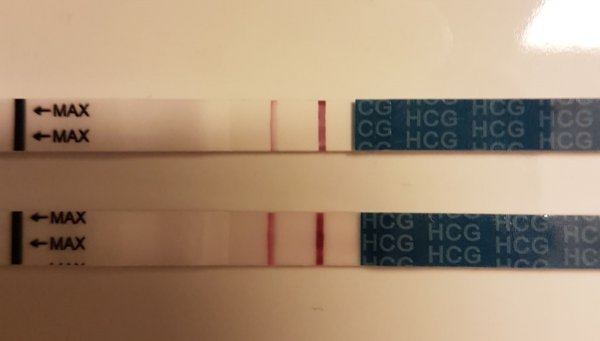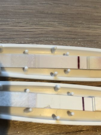 Jeg tok en test forrige torsdag. Det er den nederste og den over er fra fredag morgen...