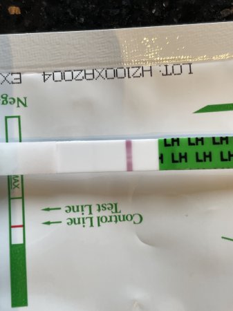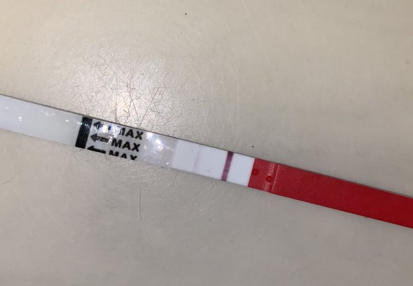 Takk for svar ❤️ Jeg målte ikke på søndag fordi den var så svak på lørdag :hilarious: Legger ved den jeg tok nå. Den ser svakere ut igjen.. Så da er nok toget gått for vår del. Vi la ikke aksjer før i går fordi vi først var usikre på om vi skulle kjøre på denne perioden. Jaja..!