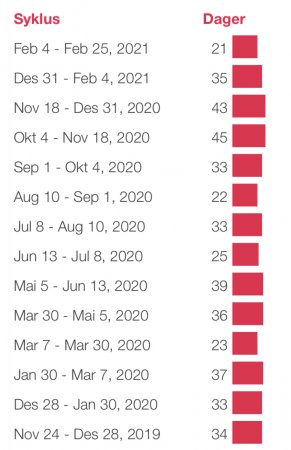 Hvor lang er syklusen din til vanlig?