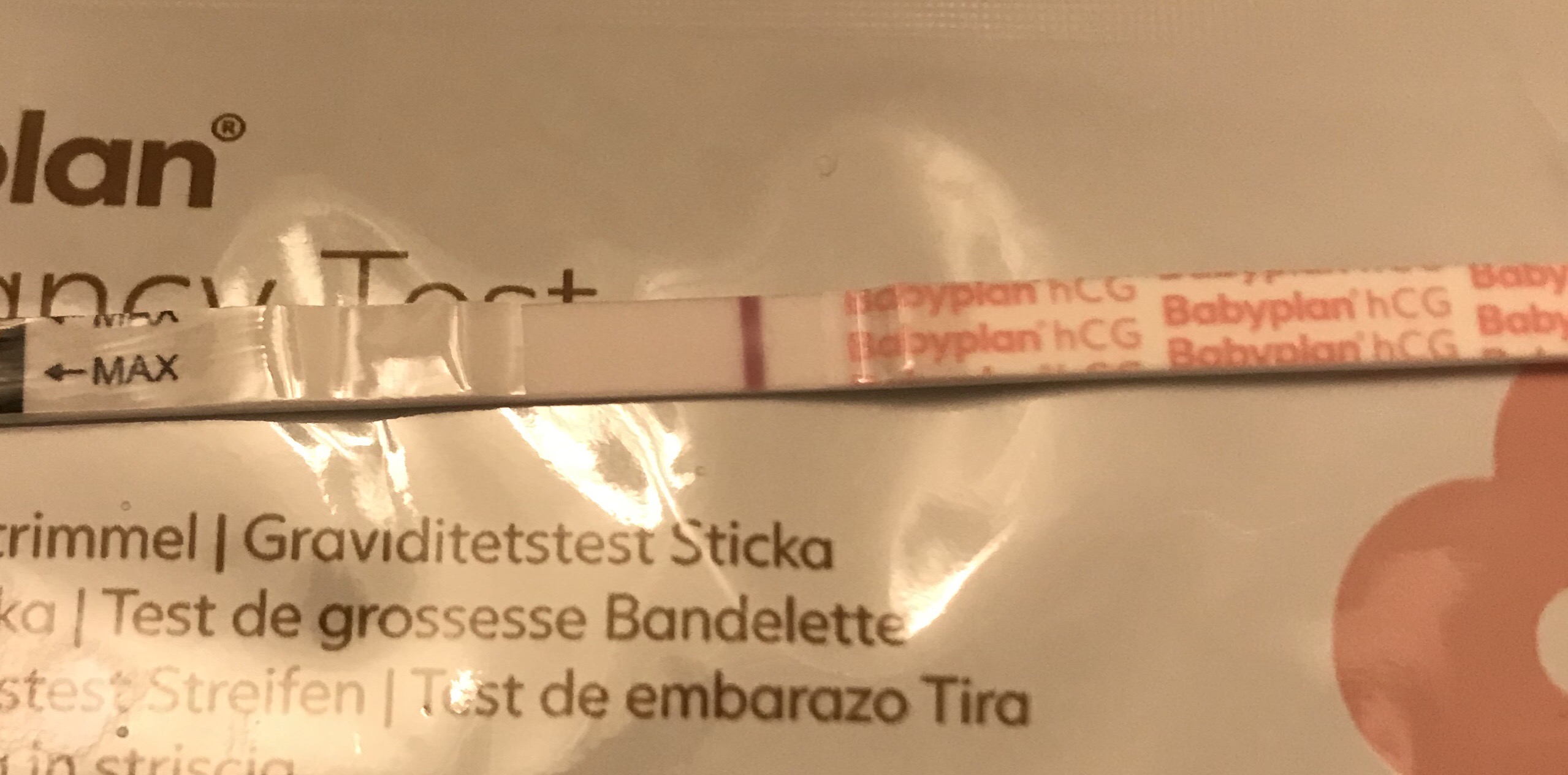 Bildet er tatt et par timer etter jeg tok testen. Glemte å kaste den, og nå skimter jeg plutselig noe! Jeg har aldri skimtet noe på Babyplan før, så nå er jeg veldig i tvil! Kan det være veldig tidlig og kanskje babystrek?