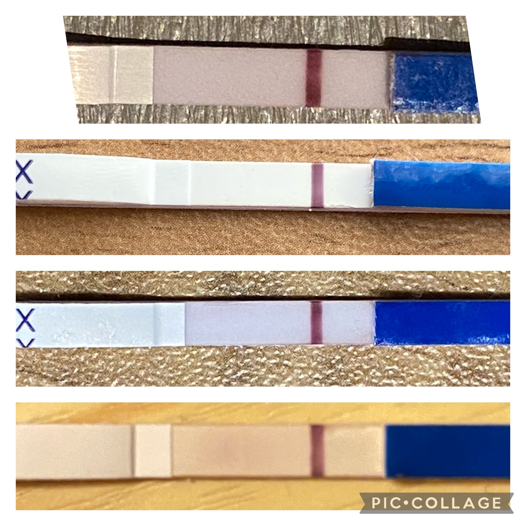 Bildet med 4 tester er henholdsvis mandag, onsdag, fredag og søndag forrige uke, den enslige testen er i dag:happy6