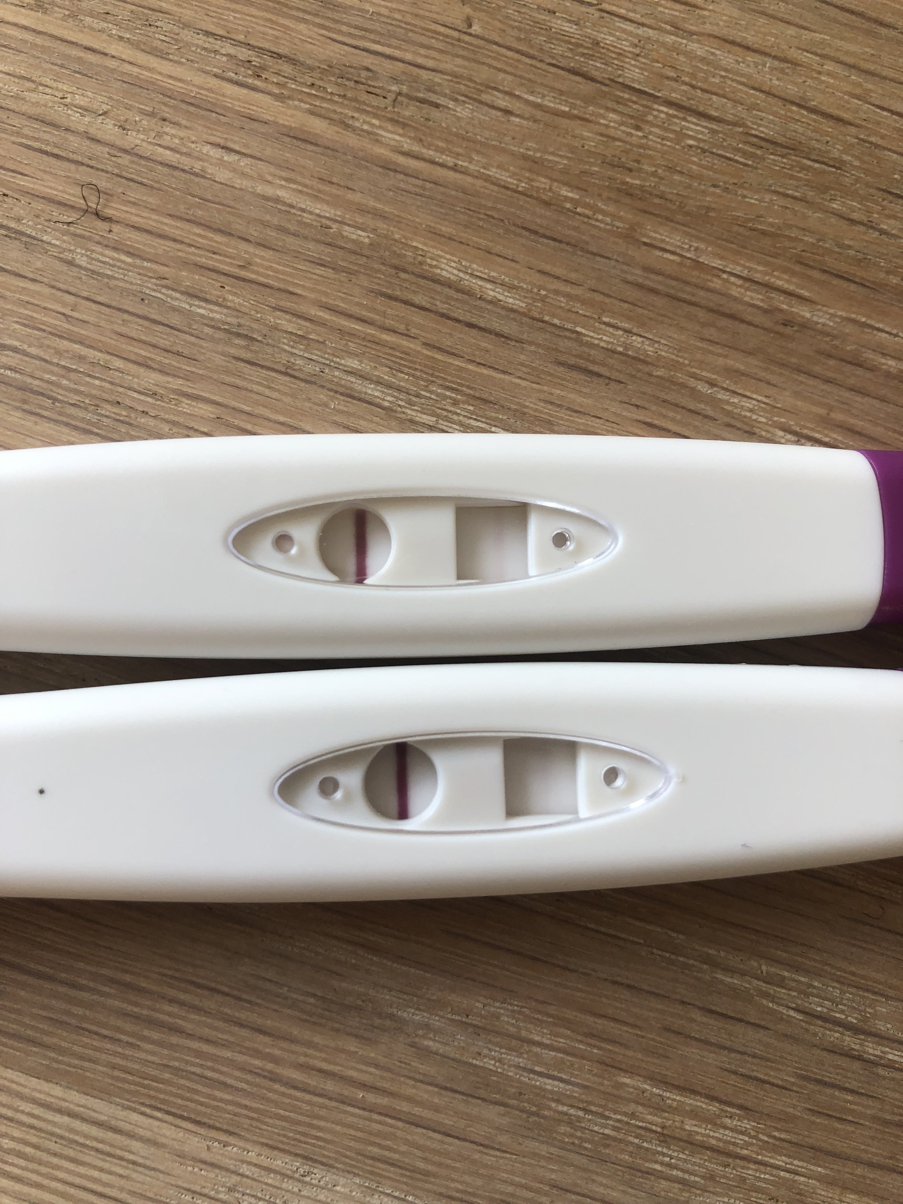 Den nederste er tatt 06.20 i dag, den øverste er tatt 15.00 i dag og er veldig tydelig rosa i virkeligheten..! 10 DPO i dag, og forventet mens i morgen. Måtte spurte for å rekke apoteket så jeg har flere til i morgen