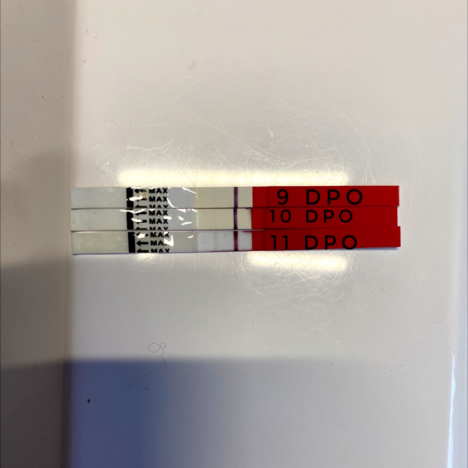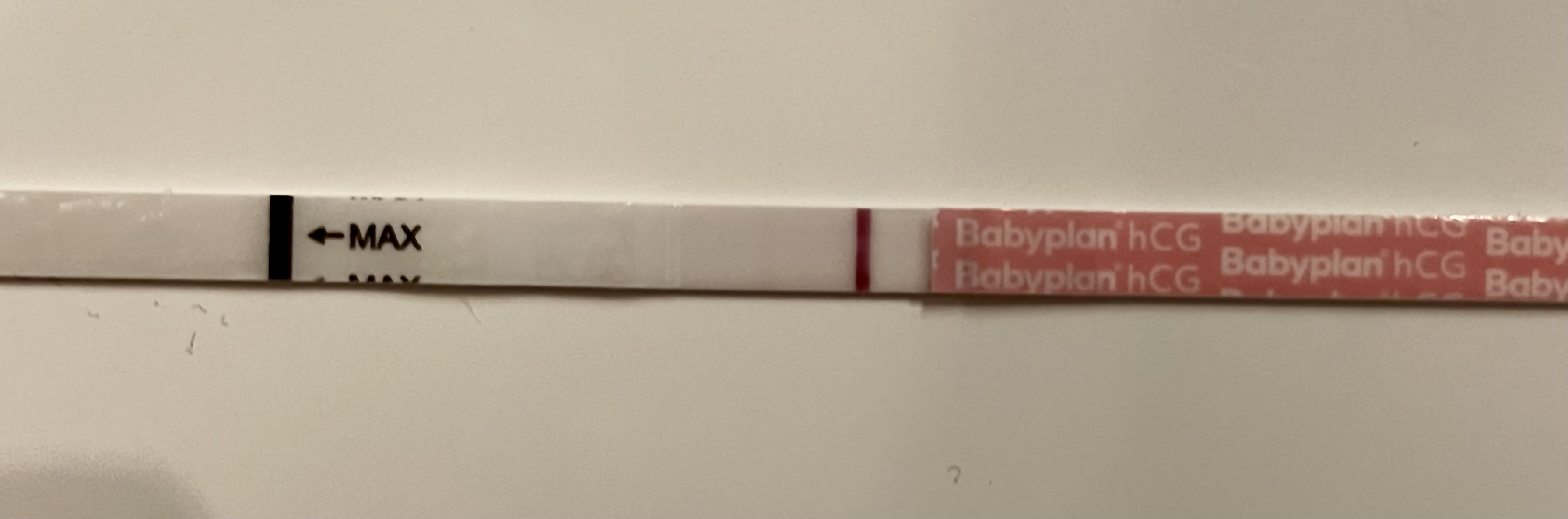 9 dpo. Litt mer synlig enn i går :love7 Streken er rosa, men umulig å få et ordentlig bilde :shy: