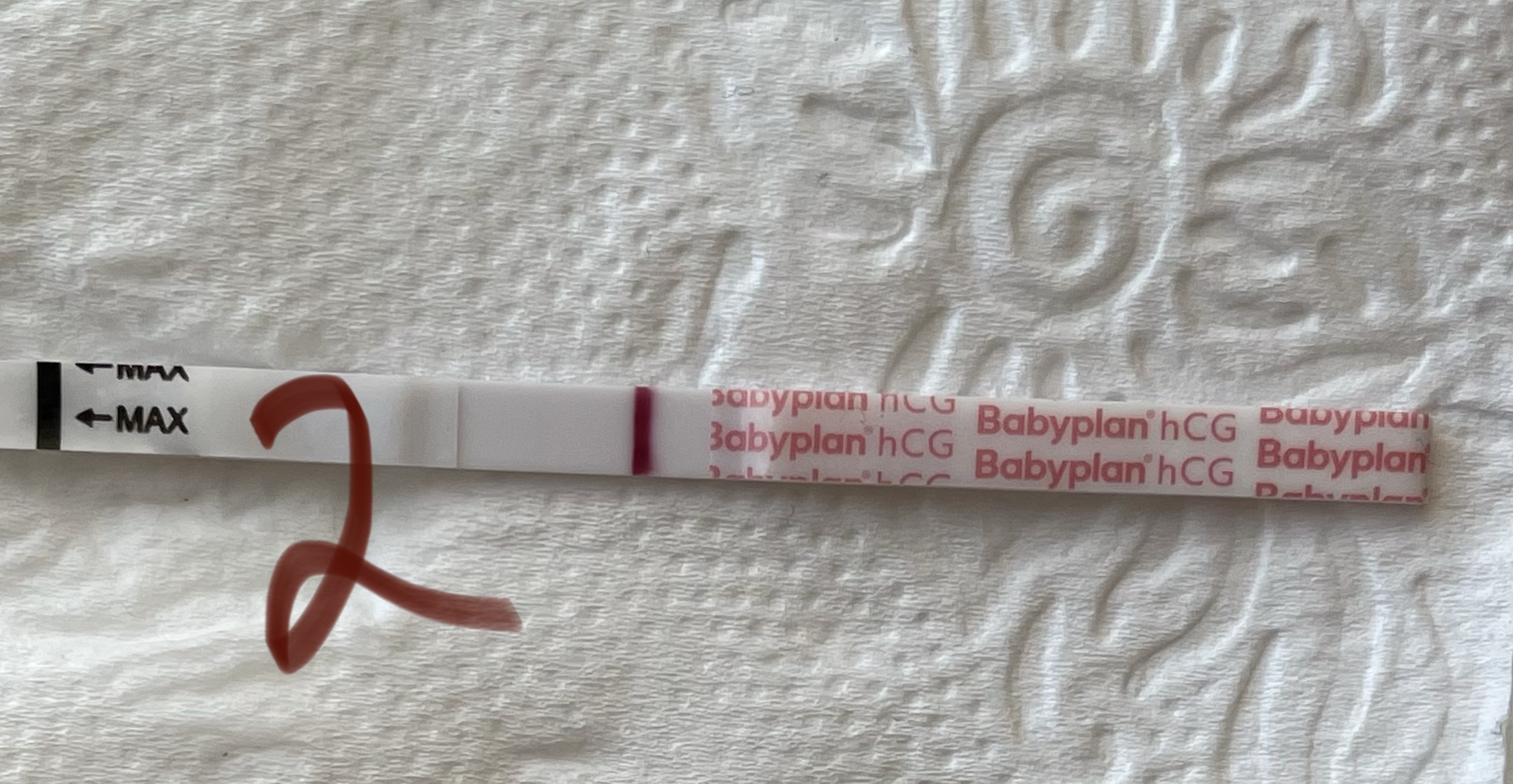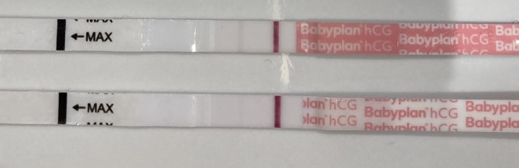 På disse ser jeg en tynn strek, men litt vanskelig å se fargen siden den er så tynnprøv å hold deg i 4 timer uten å drikke og prøv igjen