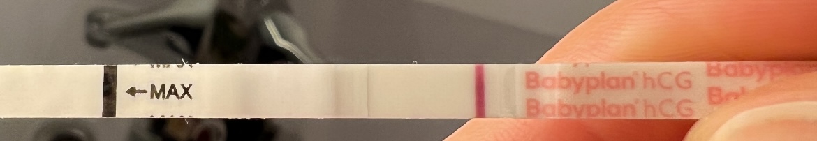 Defekt test uten tvil, men begynnelsen på noe? Noen som har erfaringer med denne testen? Skal kun komme opp 1 strek for gravid.