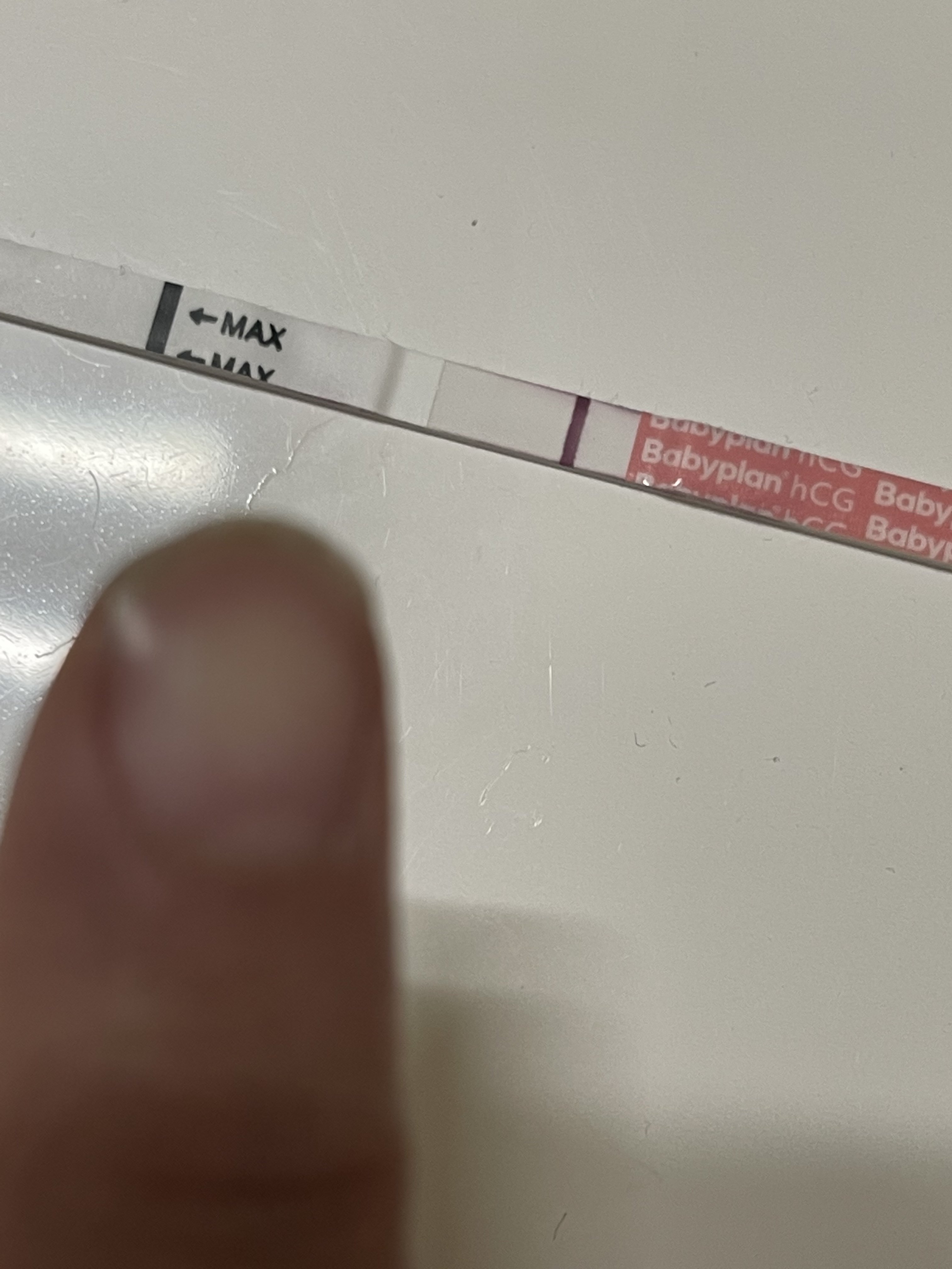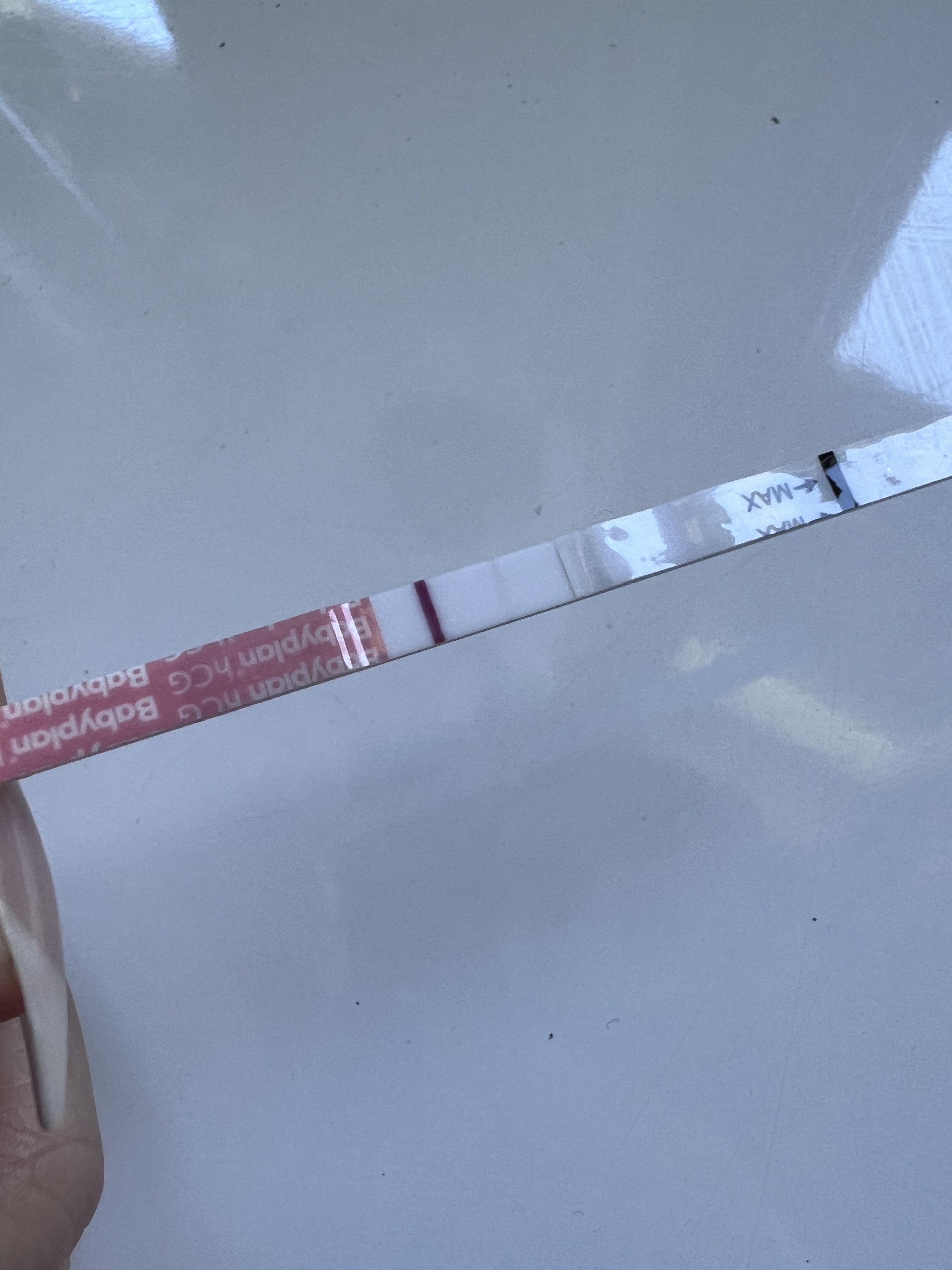 Testen fra i dag, 12 DPO <3 håper det er en spire, og ikke HCG rester fra MA i mars,