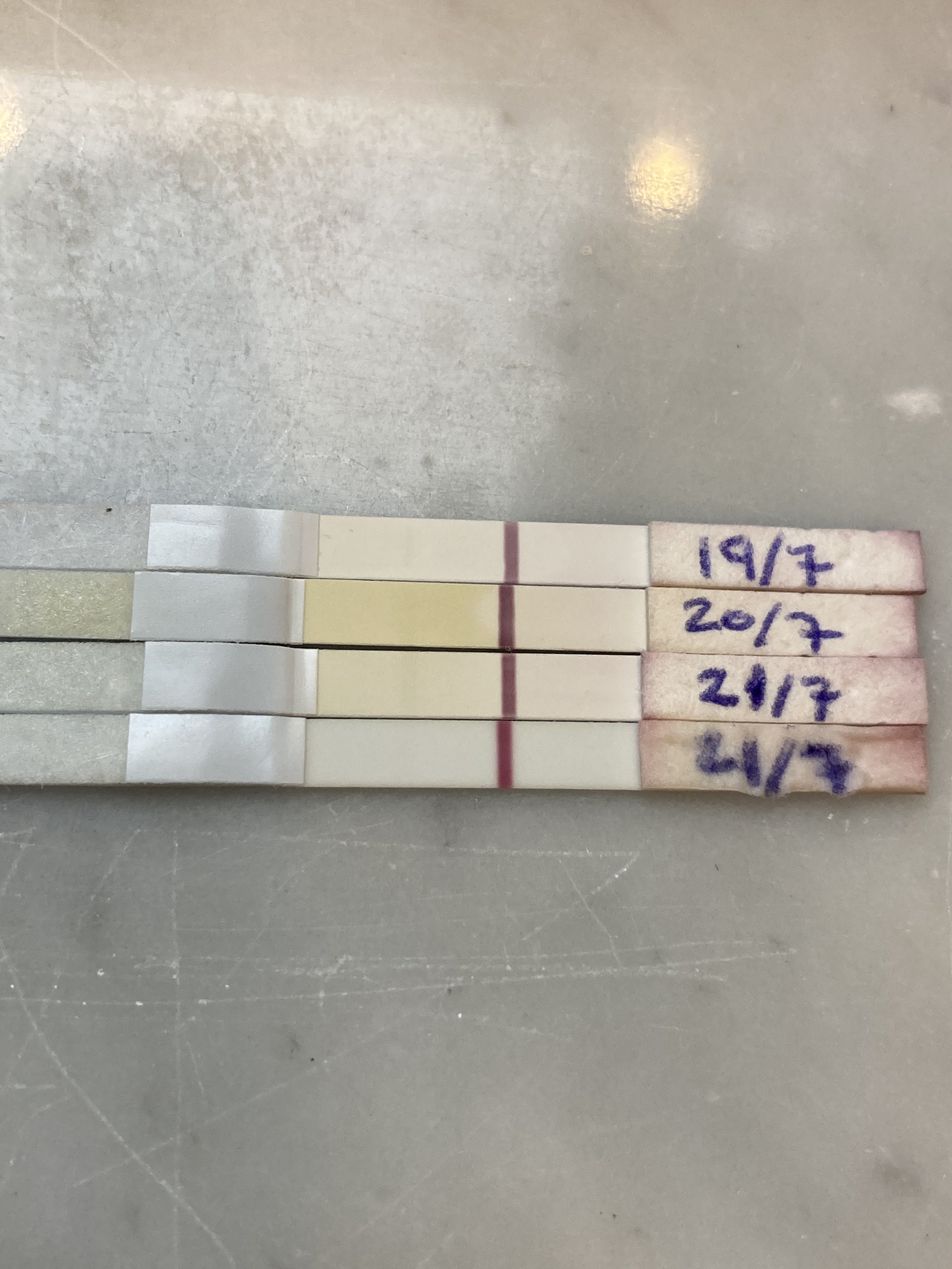 Ja er nok rett det! Men vil jo egentlig teste for å se om jeg får 3+ også, så tenker jeg kanskje kjøper en 2-pk. Så tester jeg både i morgen og lørdag (så venninnen min får se), samt når strimlene blir like sterke så tester jeg etter 3+Høres ut som en gøy måte å fortelleEr nok ikke lengre enn 24timer at de skal holder seg, men har opplevt å ta en test kl 1200 og på morningen dagen etter var den avslått.