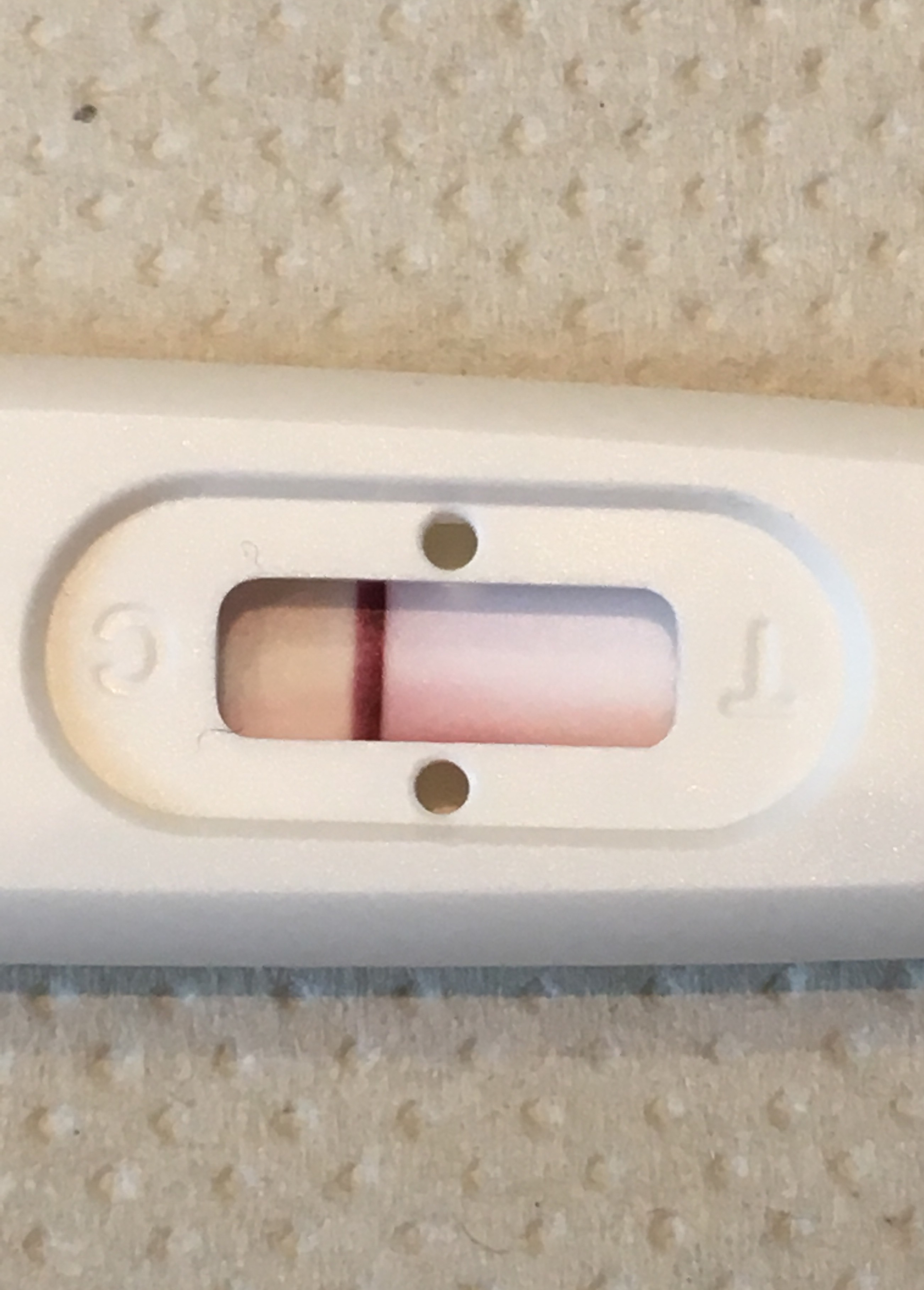 Ja, den kom opp med en gang, og har mer farge enn den i går kveld. Blir en tur på apoteket i dag, for å se hva som finnes av morsomme tester.
