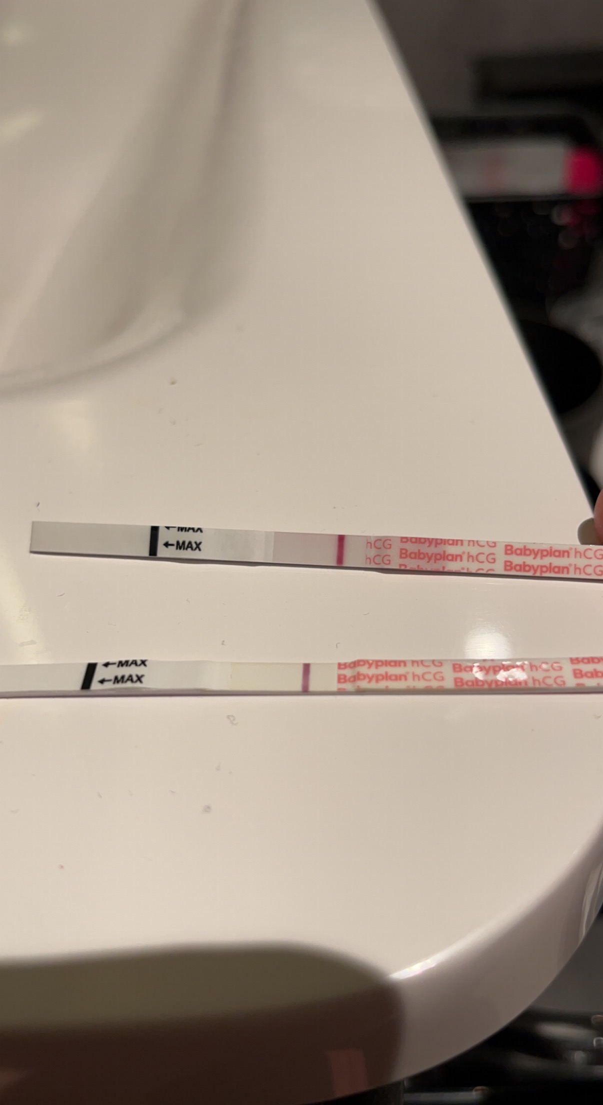 Samboer er litt preget av abortene også. Viste han testen i dag. Han ble veldig glad, men sa også at han vil se an fremover før han slipper jubelen helt løs.