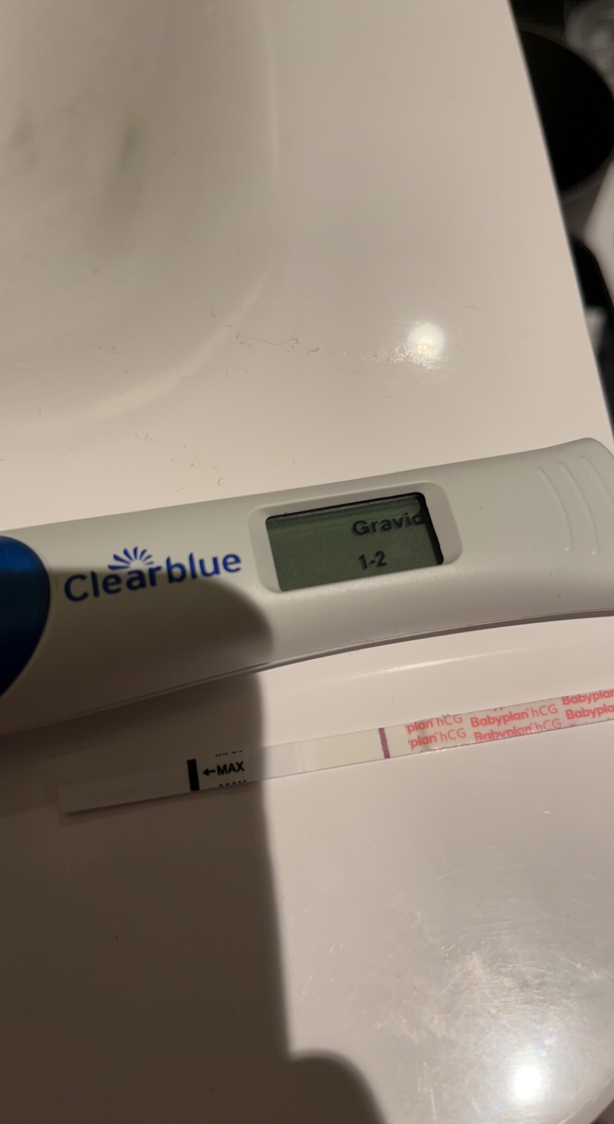 Noen som kan se noe her? Den øverst er fra i dag tidlig , og den andre er fra nå. Vet ikke helt DPO da jeg har PCOS men mulig mellom 6-8 DPO utifra eggløsning eggehvit utflod.