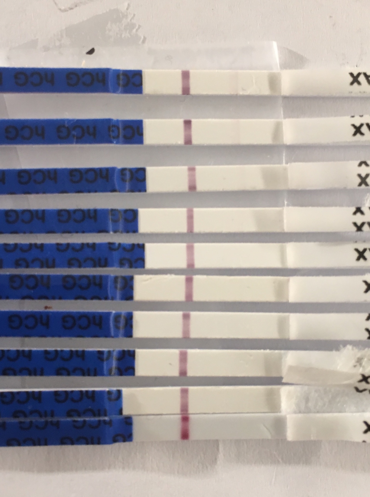 Svake streker enda her, ikke noe tegn på noe økning i styrke på teststrek. Monitor sier enda "høy". Apper sier jeg skal ha EL 16-18 en gang.