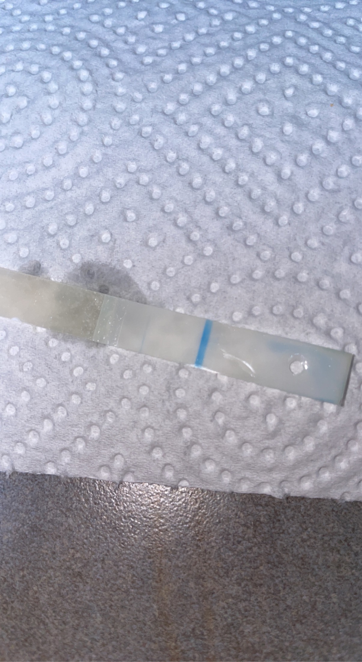 Jeg vil si mest sannsynlig positiv, om du gikk i dusjen 3 minutter etter på, så er jo tekstlengde ca 5 minutter? Kan jo ha blitt blå da? Hvis du vil være helt sikker, ta ny test i morgen. Men jeg hadde sett veldig positiv på det:)