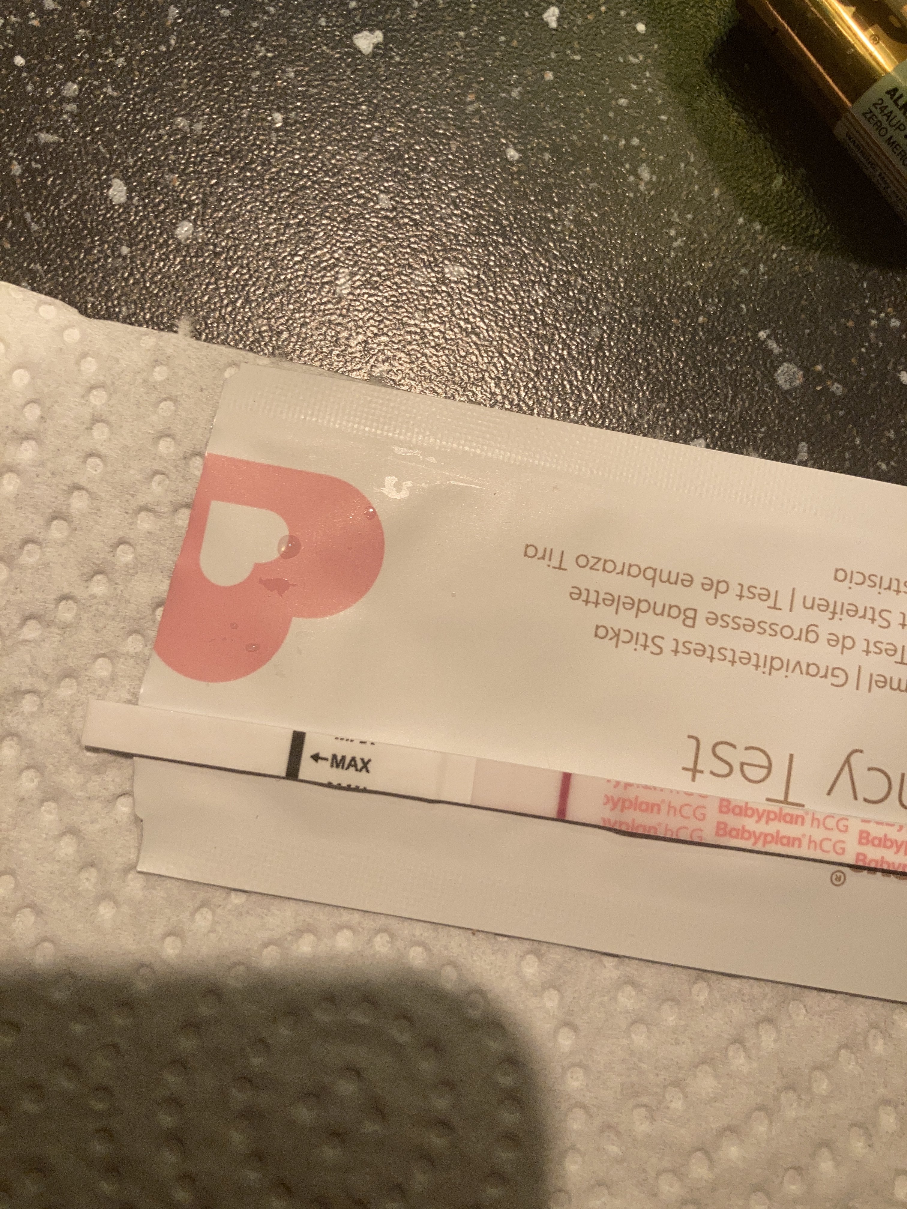 Håper den blir sterkere i morgen. Redd for at det kan være igjen hcg-rester etter forrige svangerskap. Men denne testen er sterkere enn den «siste» jeg tok 19. nov. Den streken var så og si ikke synlig. Så sa meg ferdig med å teste, frem til i går da. Men da tenkte jeg å teste for å se om jeg hadde blitt gravid igjen liksom.