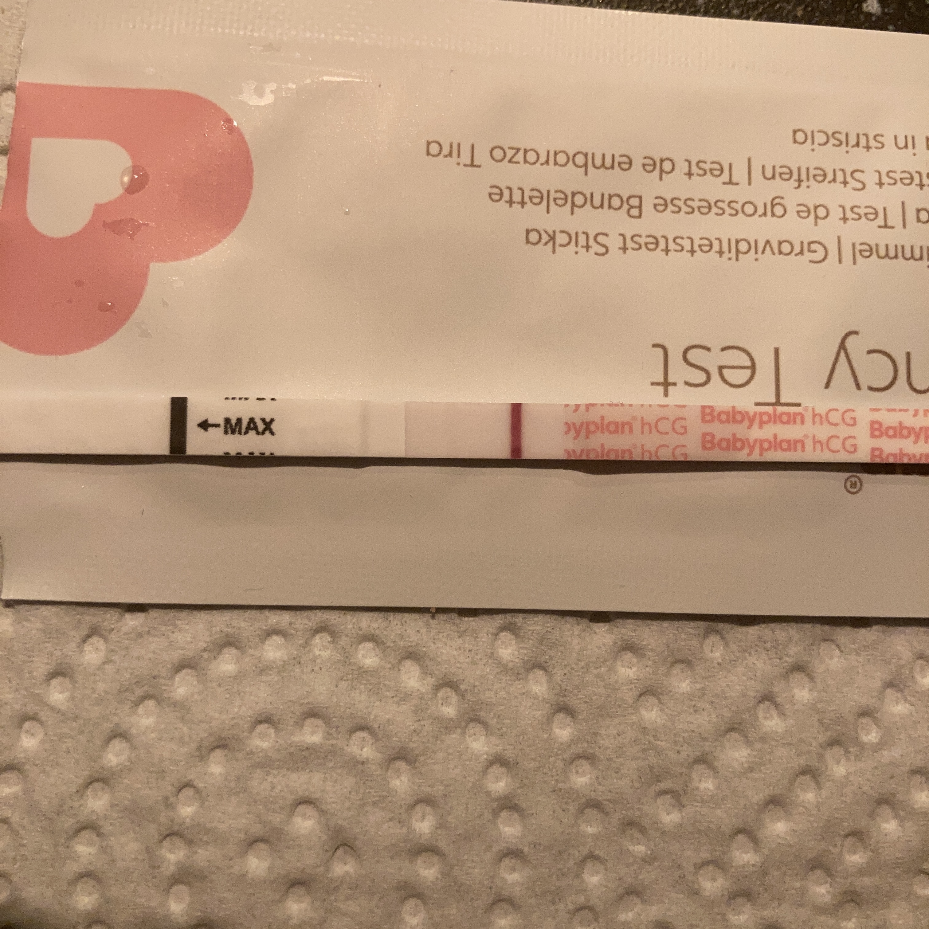 Håper den blir sterkere i morgen. Redd for at det kan være igjen hcg-rester etter forrige svangerskap. Men denne testen er sterkere enn den «siste» jeg tok 19. nov. Den streken var så og si ikke synlig. Så sa meg ferdig med å teste, frem til i går da. Men da tenkte jeg å teste for å se om jeg hadde blitt gravid igjen liksom.Jeg ser strek!
