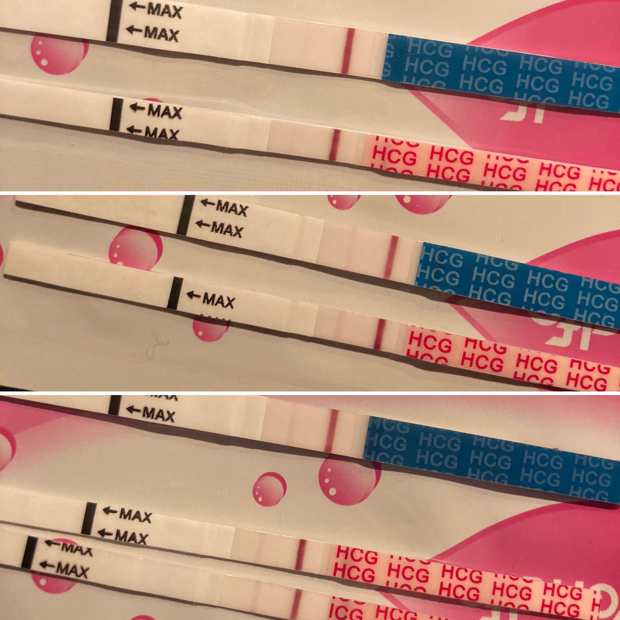 Får helt fnatt av testene mine. Øverste er søndag. Midten er mandag og nederste i dag. Jeg synes stigningen er så dårlig :sorry: 12DPO i dag.