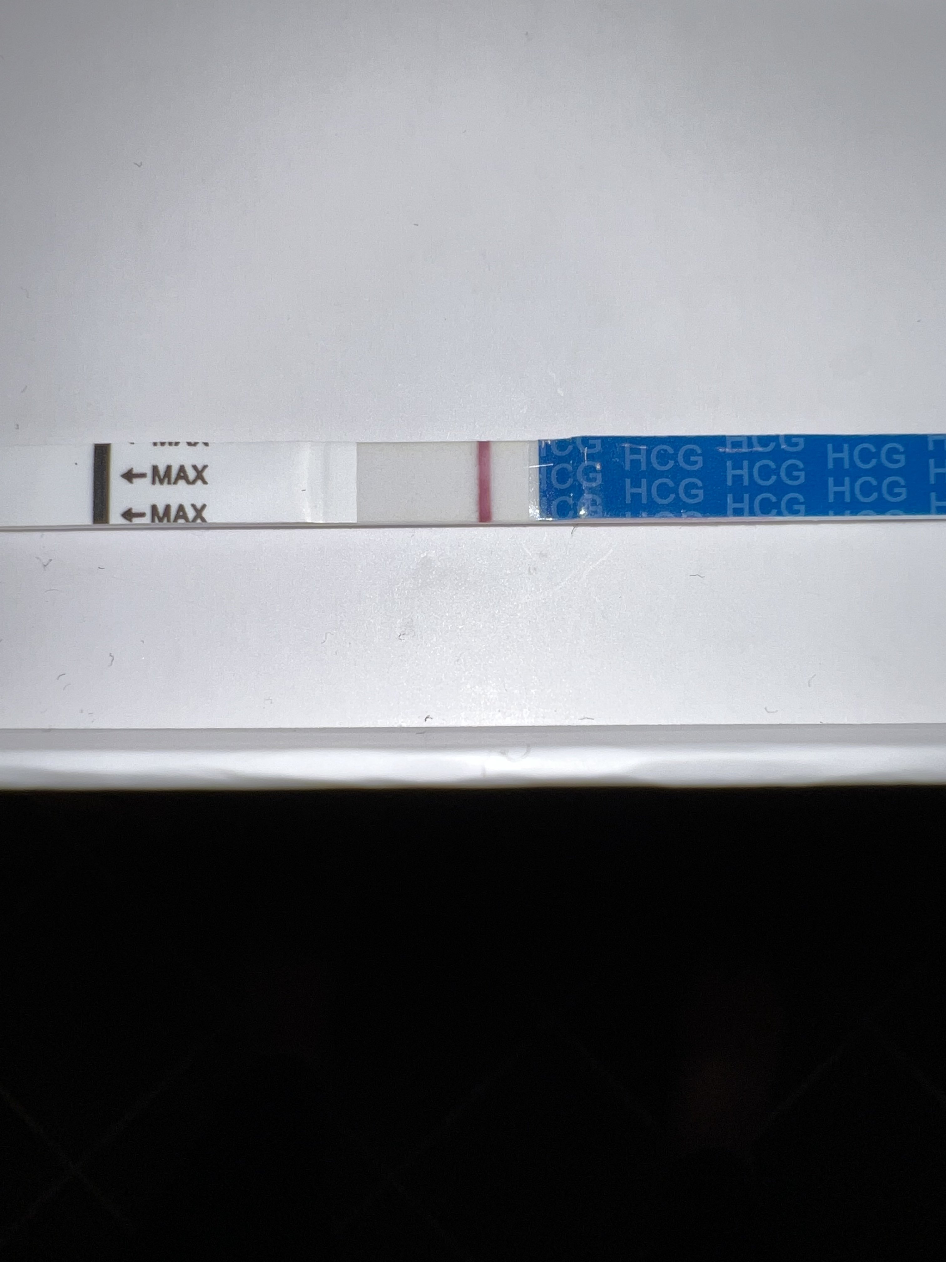 Denne ser lik min ut, men fikk beskjed lengre opp at den var for lite rosa :/Okei, begynte å spotte dpo 8-9. spottingen stoppet. Ingen tr enda. Er tatt på 2 urin, glemte det på første fordi jeg hadde avskrevet det fullstendig. (Og var rimelig sur fordi jeg trodde det ikke kom til å gå denne måneden) Er det flere en meg som ser en liten strek eller er jeg blitt fullstendig sinnsyk?