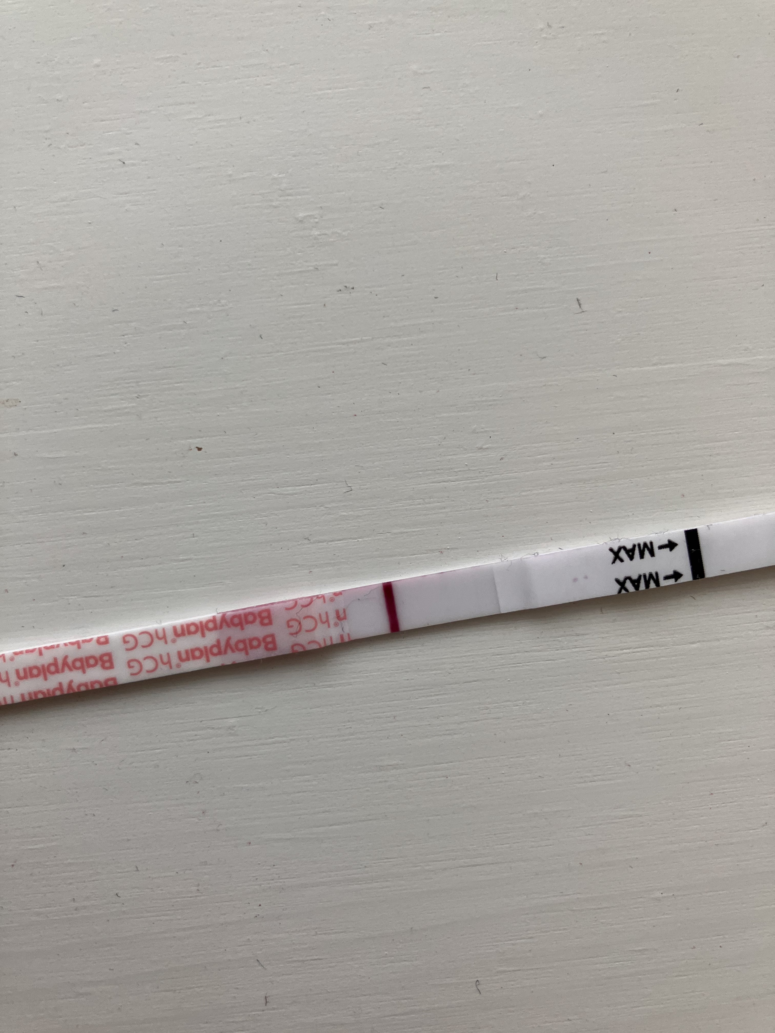 Noen som ser noe her? Er 8dpo tror jeg, så er jo selvsagt veldig veldig tidlig. Synes jeg så en svaaak strek(evt skygge), og når den tørket litt så ble streken helt borte… dette er av europris sine tester, jeg vet ikke hvor sikre de er når jeg ikke har noen form for erfaring med de fra før