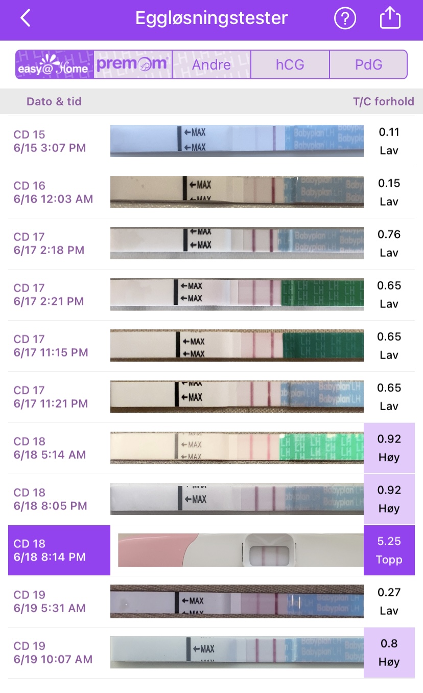 Men ville den ikke normalt komt cd 19 når jeg hadde peak cd 18? Men de el-smertene er ikke til å ta feil av, men jeg har ikke helt skjønt hva smertene kommer av. Er det selve egget som slipper da? Ja, du har helt rett i at jeg bør holde meg til 1 type testDet kan se ut som den var cd 18.
