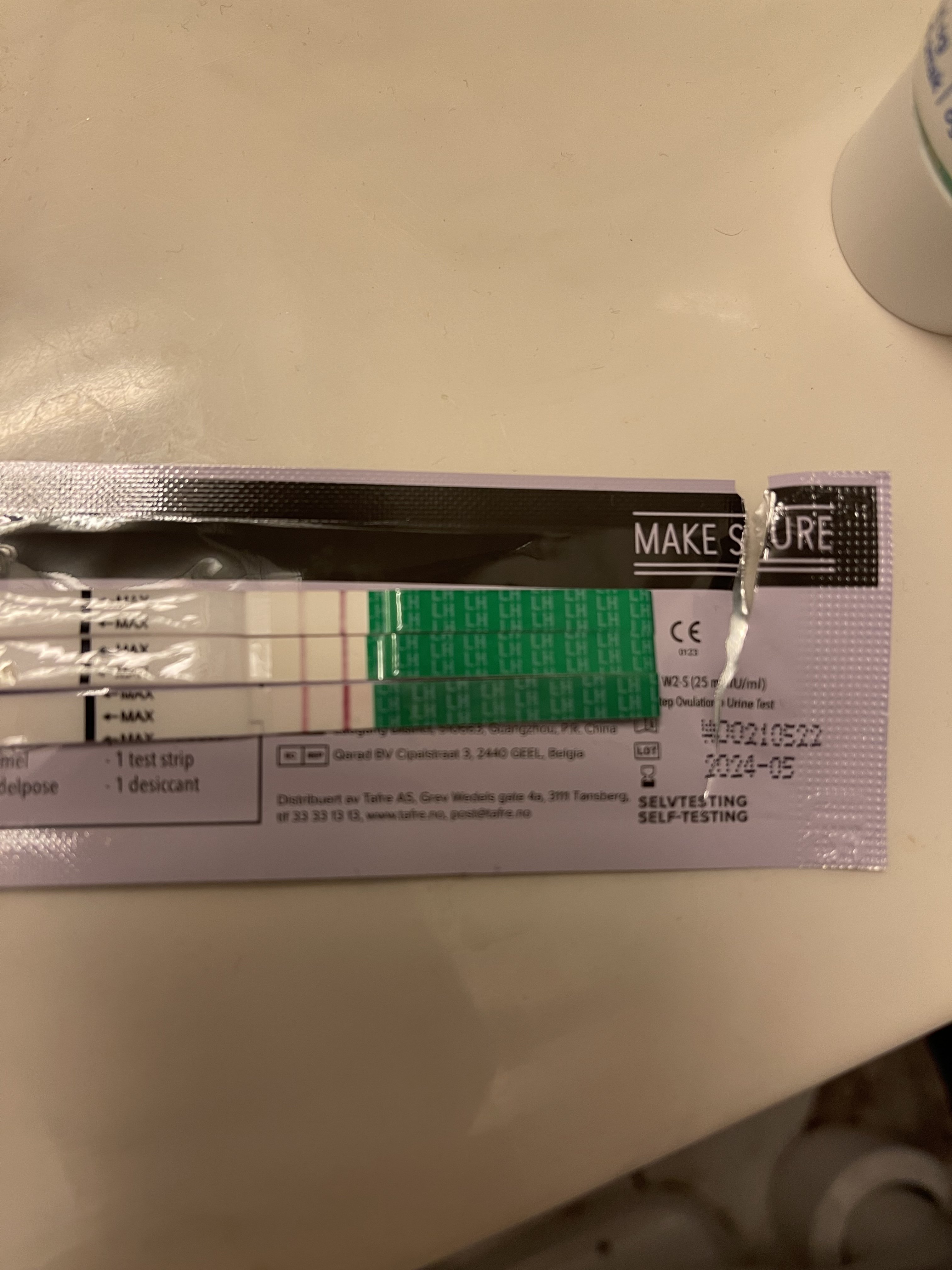 Testet med teststrimler fra RFSU tirsdag, torsdag, lørdag, søndag og i dag. Og det er ingen strek der altså. Noen som har opplevd så mange negative tester og likevel vært gravid?