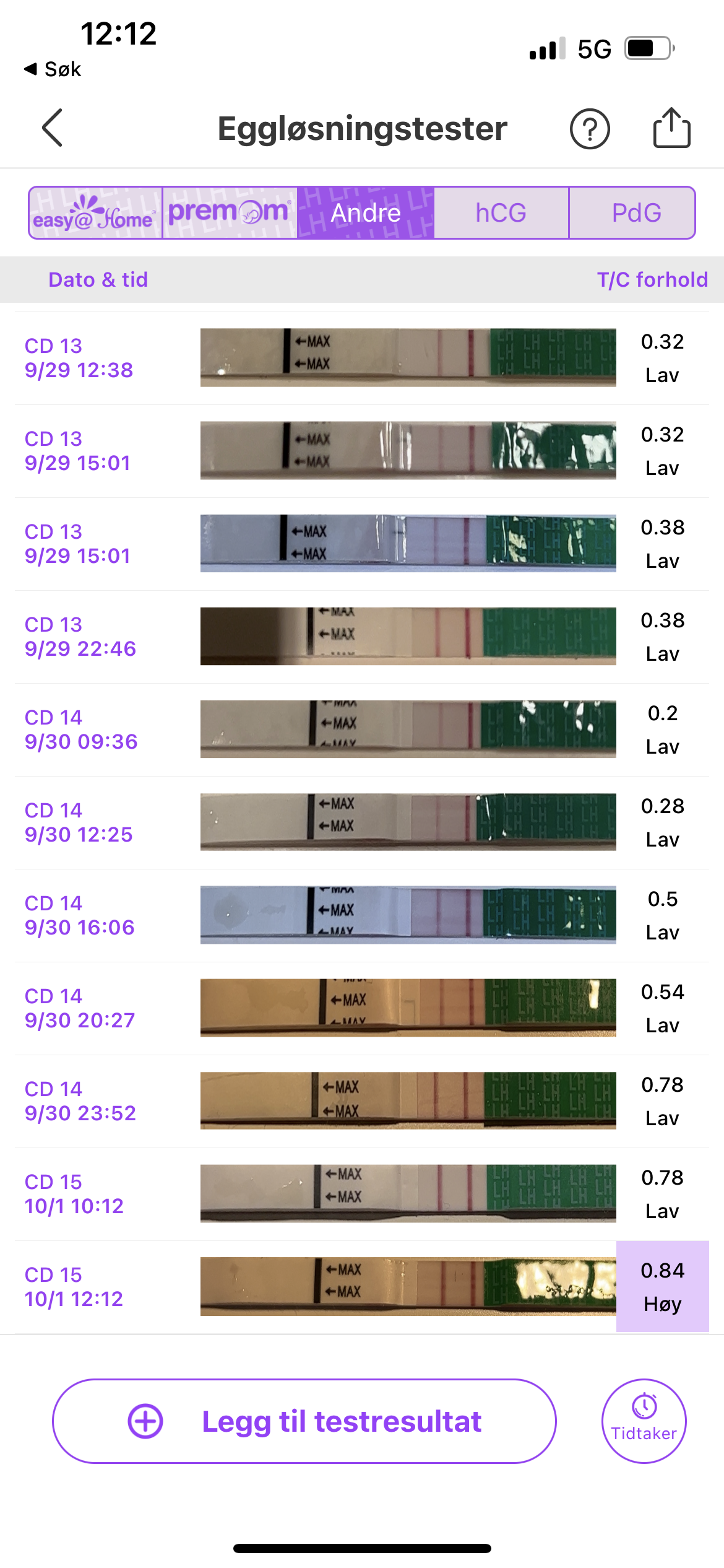 Har ikke vært flink nok til å tempe, men ca. kl.20 i går var eltest negativ. Kan det bety at eggløsning skjedde i går kveld? Det ville vært perfekt i forhold til aksejelegging i så fall.Ja,når egget har sluppet, så øker tempen![]()