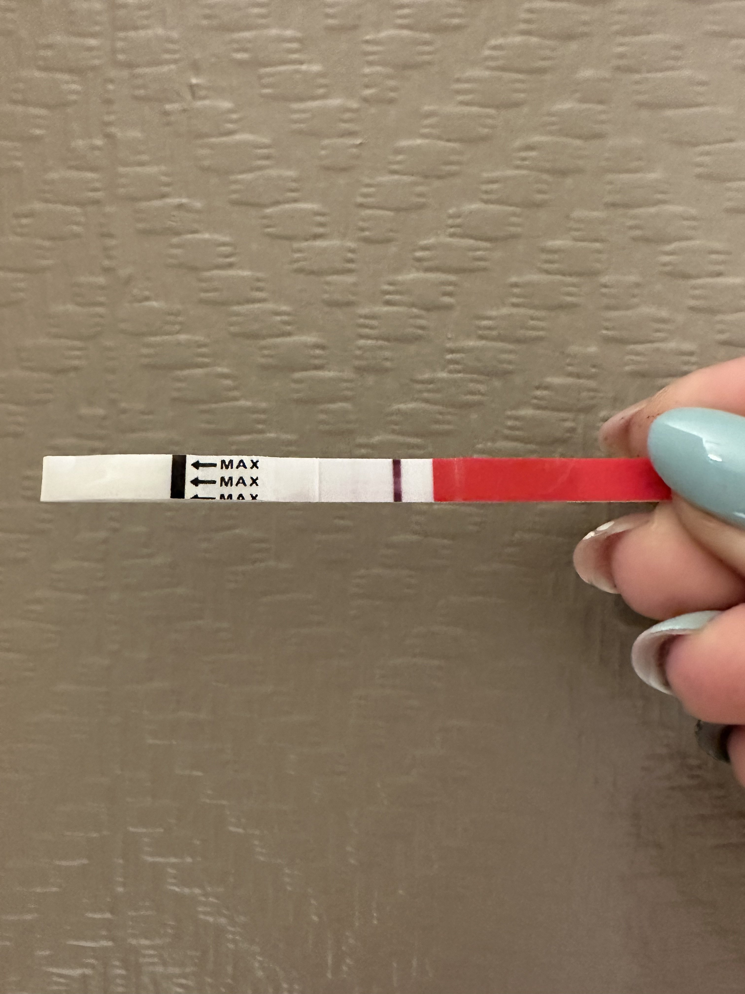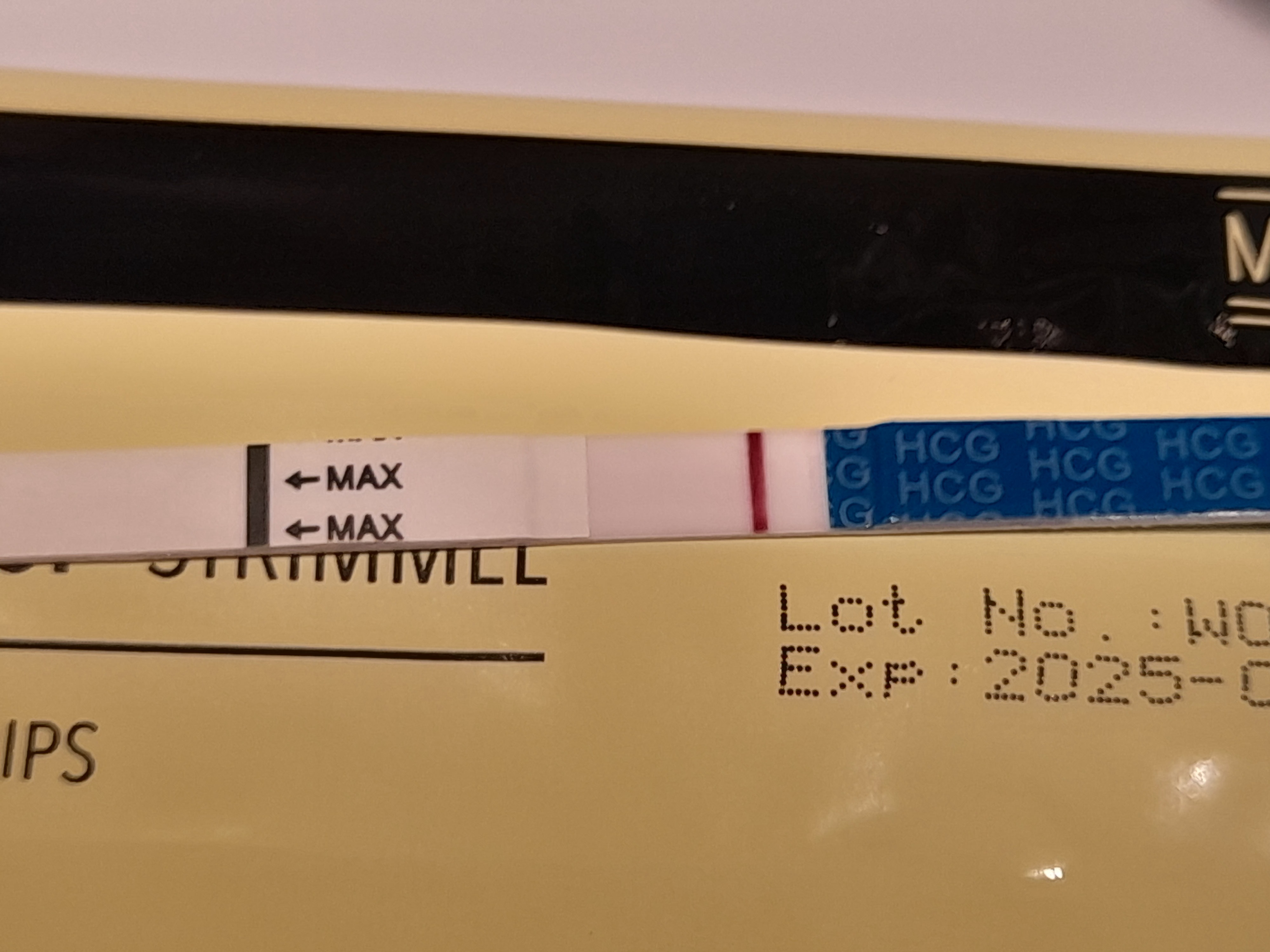 Hva tror dere? Jeg kan se med det blotte øyet at det er blå-farge i streken, bare vanskelig å få med på bilde. Streken kom ganske fort9 eller 10 dpo idag