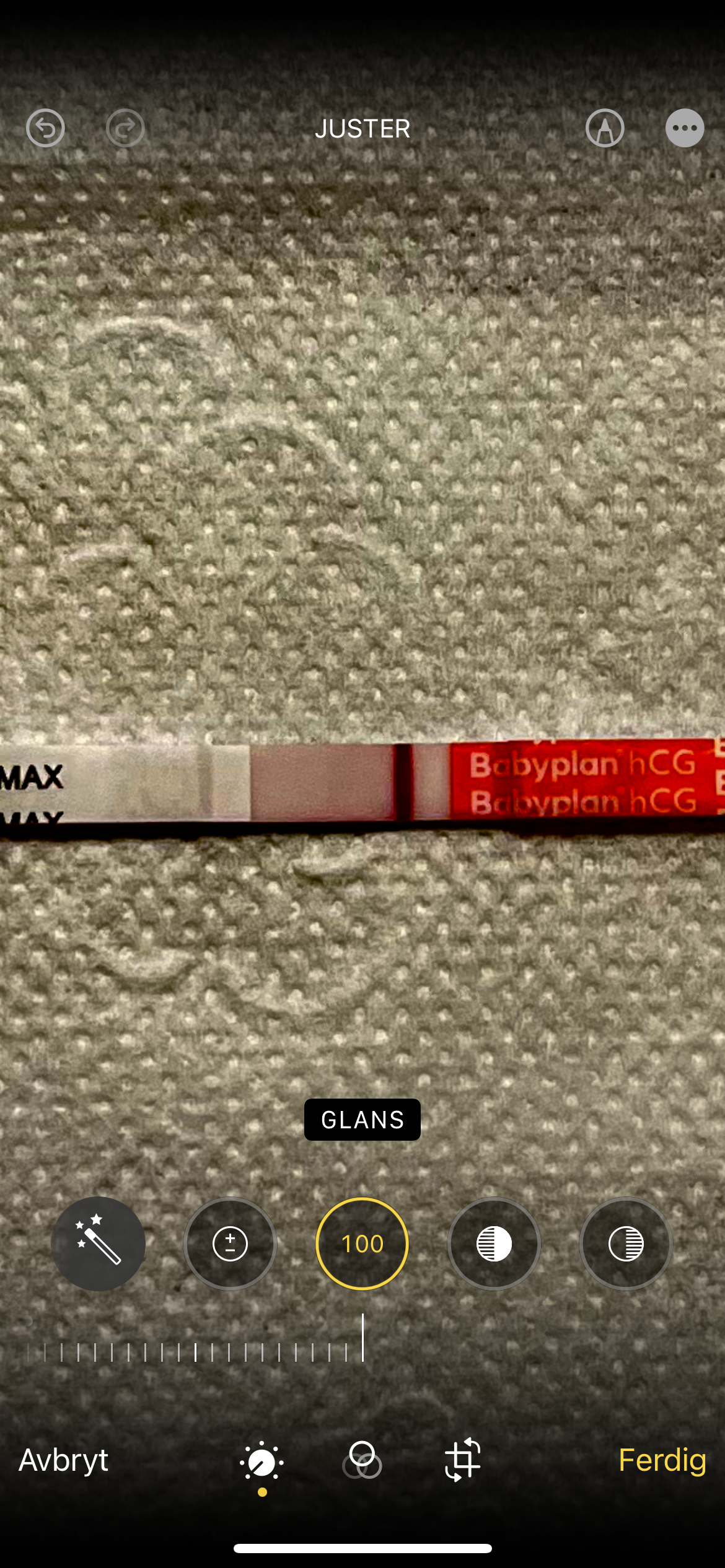 Har noen opplevd at strek dukker opp så nærme kontrollstrek? 8 dpo, og tenker dette mest sannsynlig er en defekt testPå det redigerte bilde er den jo veldig tydelig, og kan se den såvidt på det uredigerteVis vedlegget 419936Vis vedlegget 419937