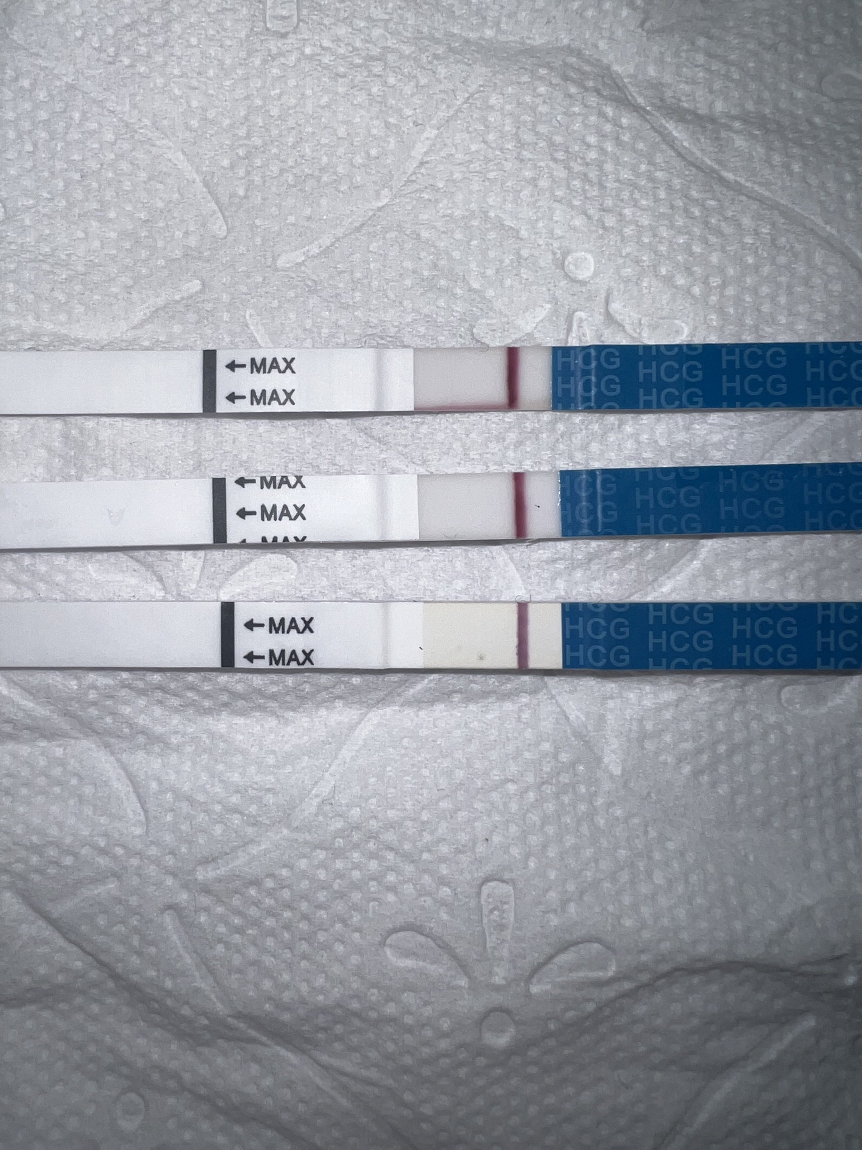 Helt dust å være på dette testekjøret. Satte inn blastocyst forrige onsdag, så er 12 DPO i dag. Blodprøve på fredag nå. Ser jo tydelig streken, men liker ikke at den ikke er så sterk… De første er make sure, og den siste er rfsu (tatt på urin 4timer). Leser jo både at de er bra og dårlige! Vet liksom ikke hva jeg skal tro :rolleyes: