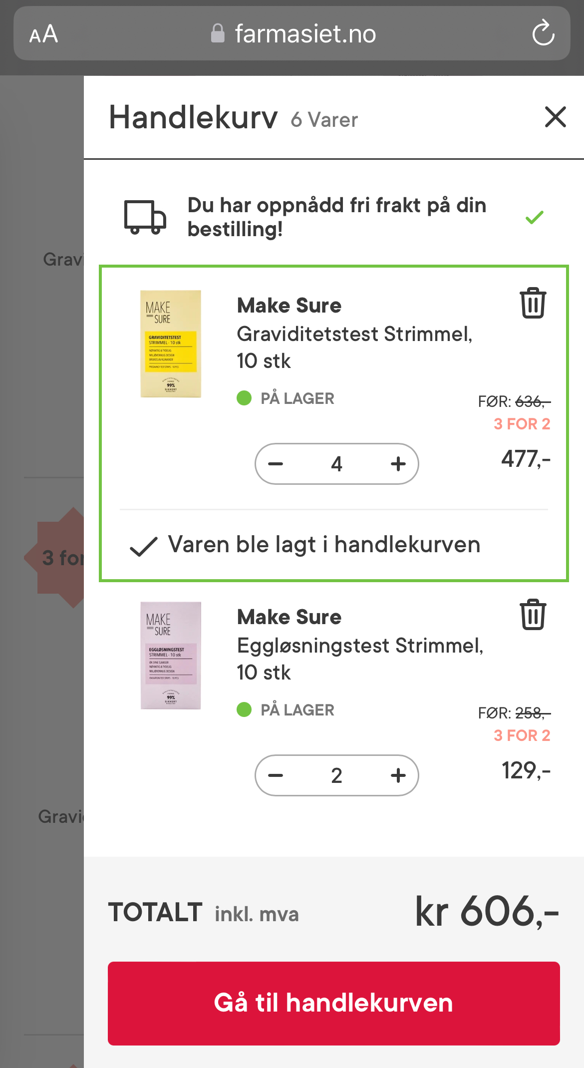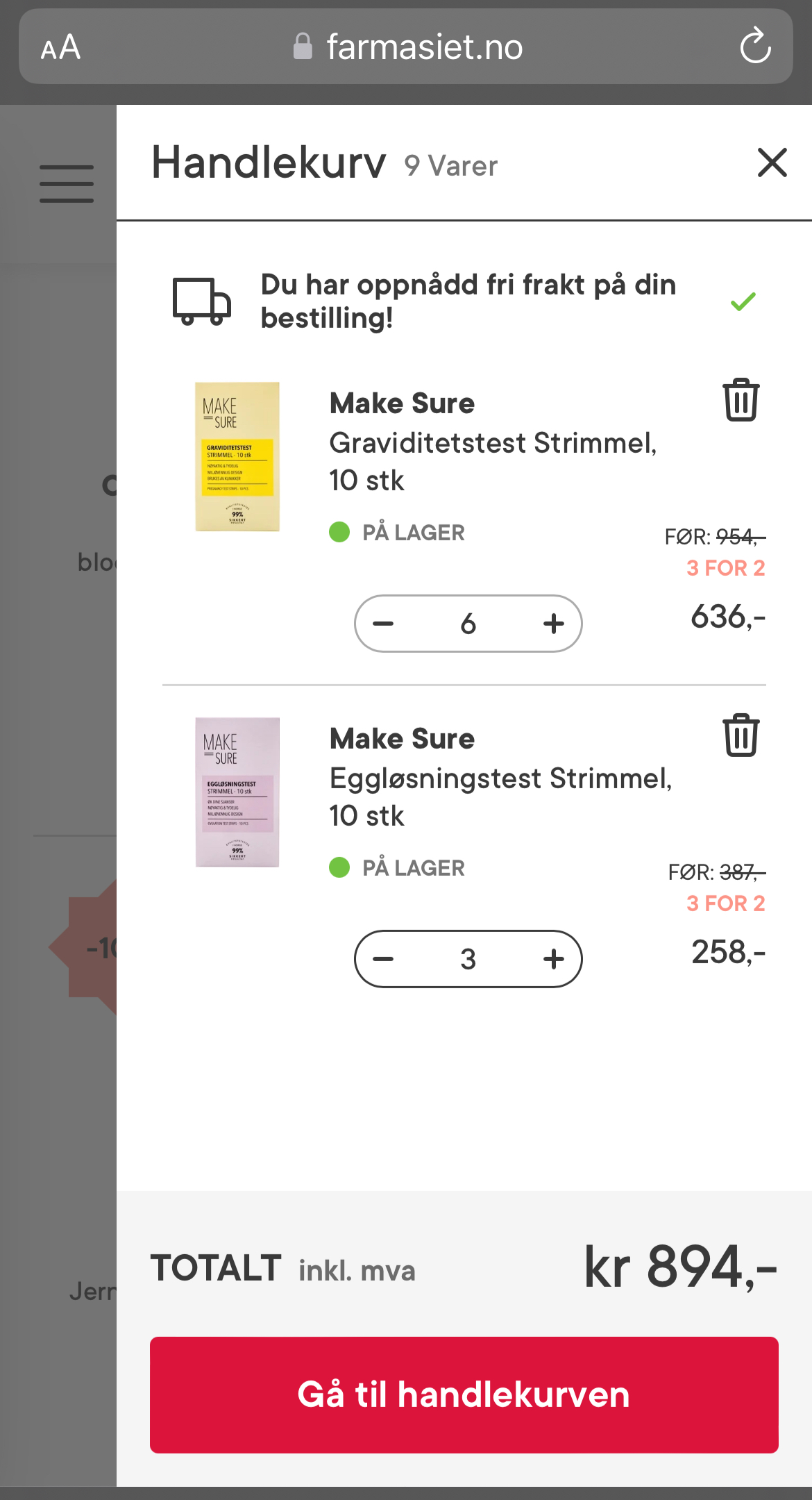 Jeg tenkte prøve på det samme, 2 pk el tester og 4 gravidtester, men fikk du tilbudet da?