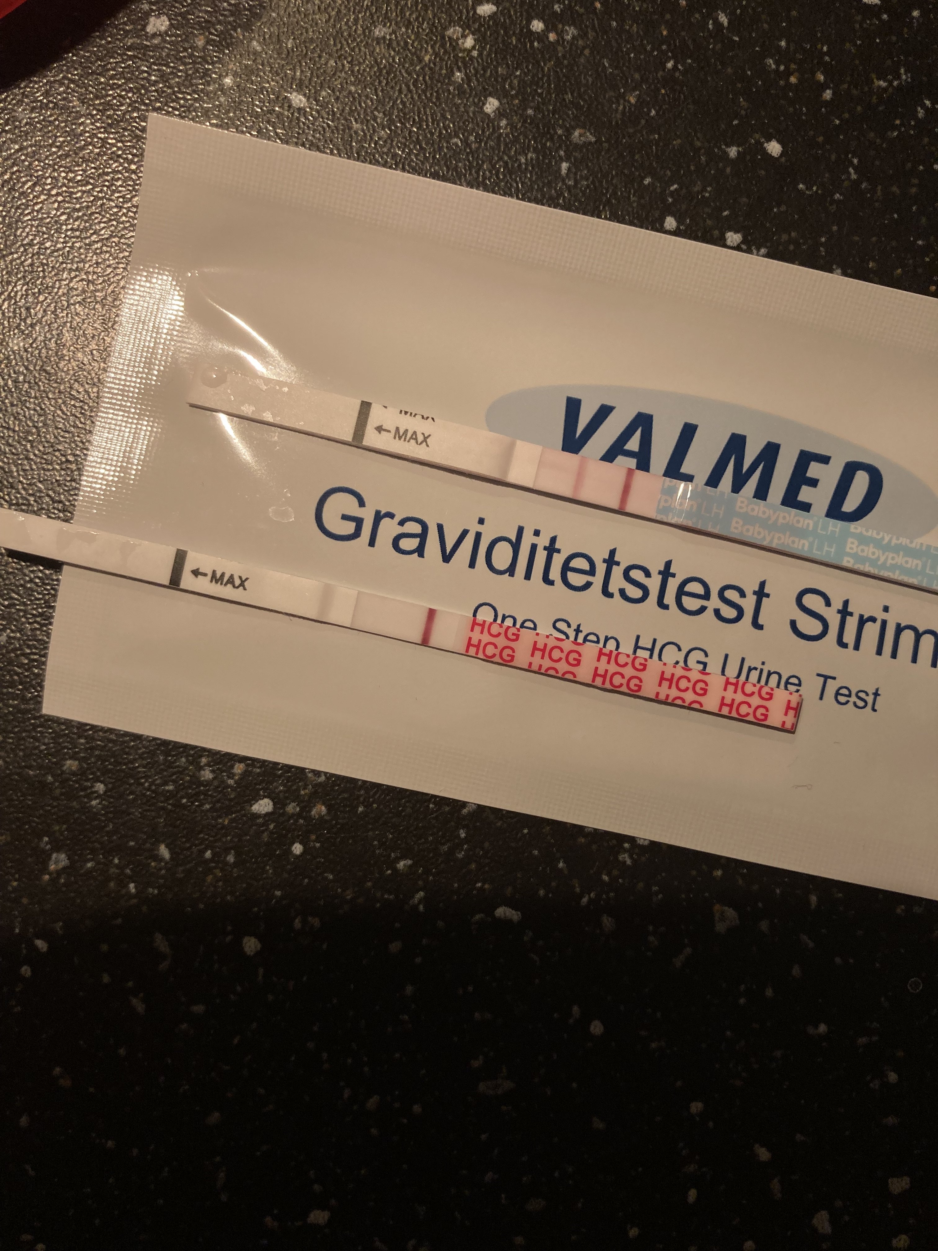 Vet ikke eksakt DPO, men vipper kanskje mot 8DPO(den ble tatt rett over midnatt). Det er strek, så gjenstår det å se om det bare er skyggestrek eller babystrek!