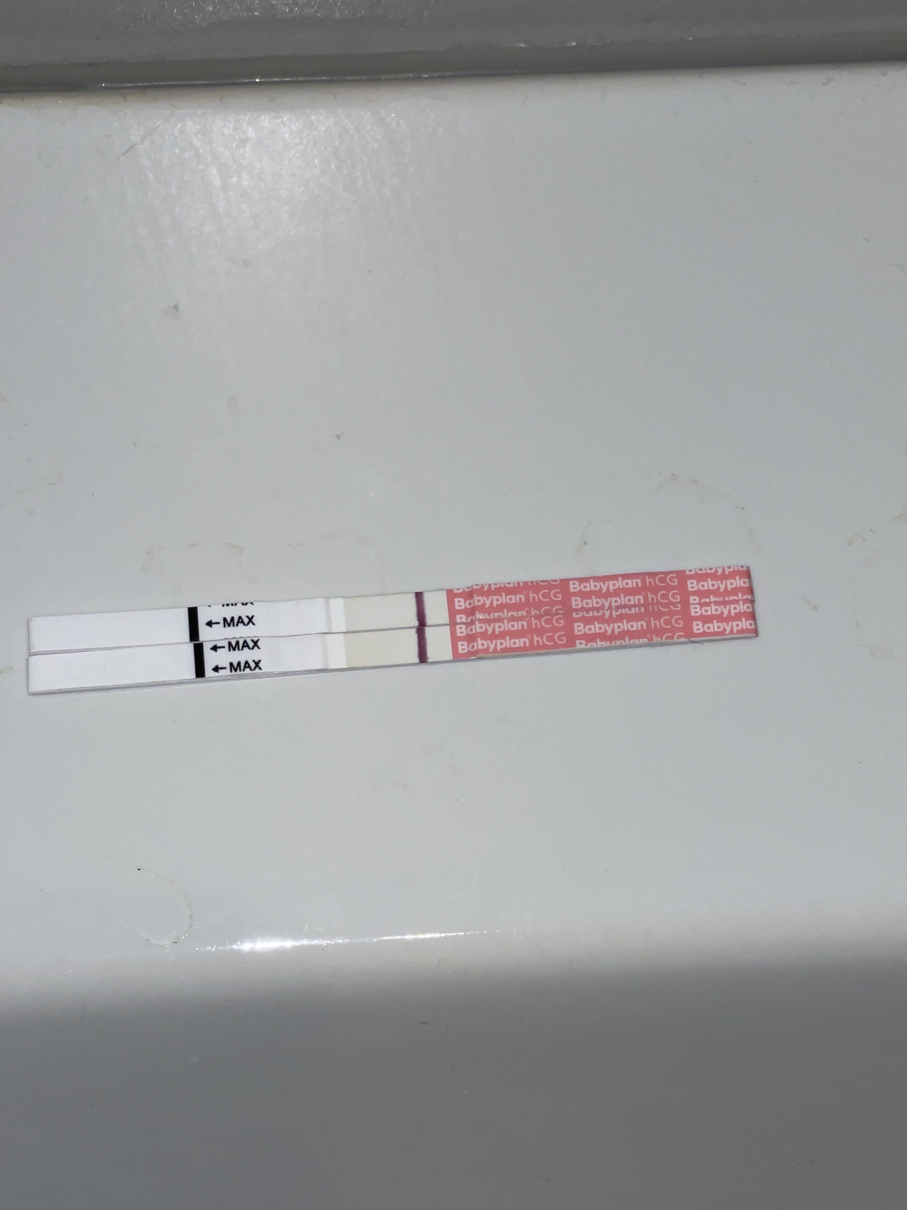 Røk på enda en test og føler jeg kan skimte noe, men kan være skygge ogsåSkimter noe i toppen der . Ta en ny i morgen helst to dagerSpennende , jeg hadde testa fem ganger om dagen