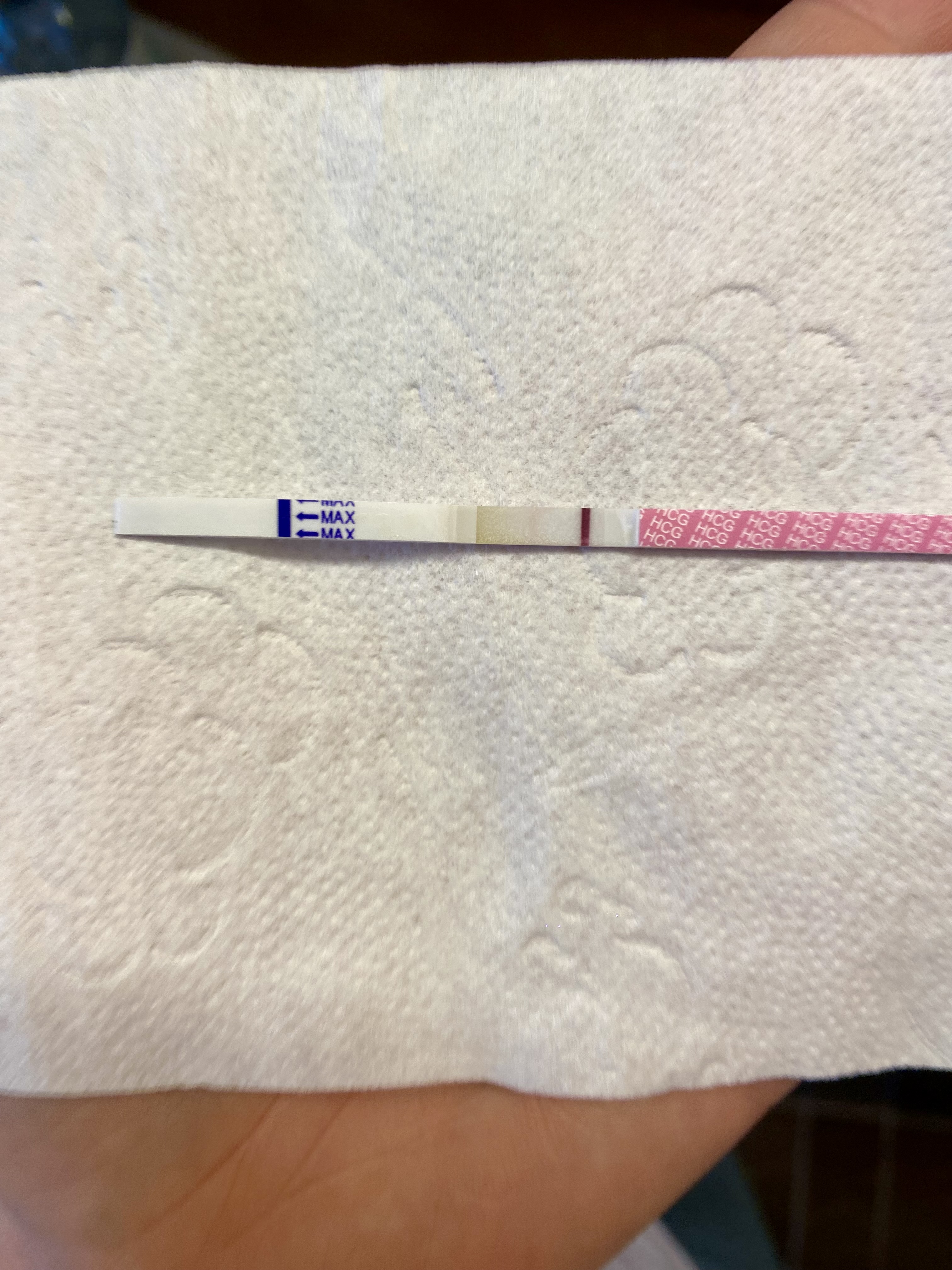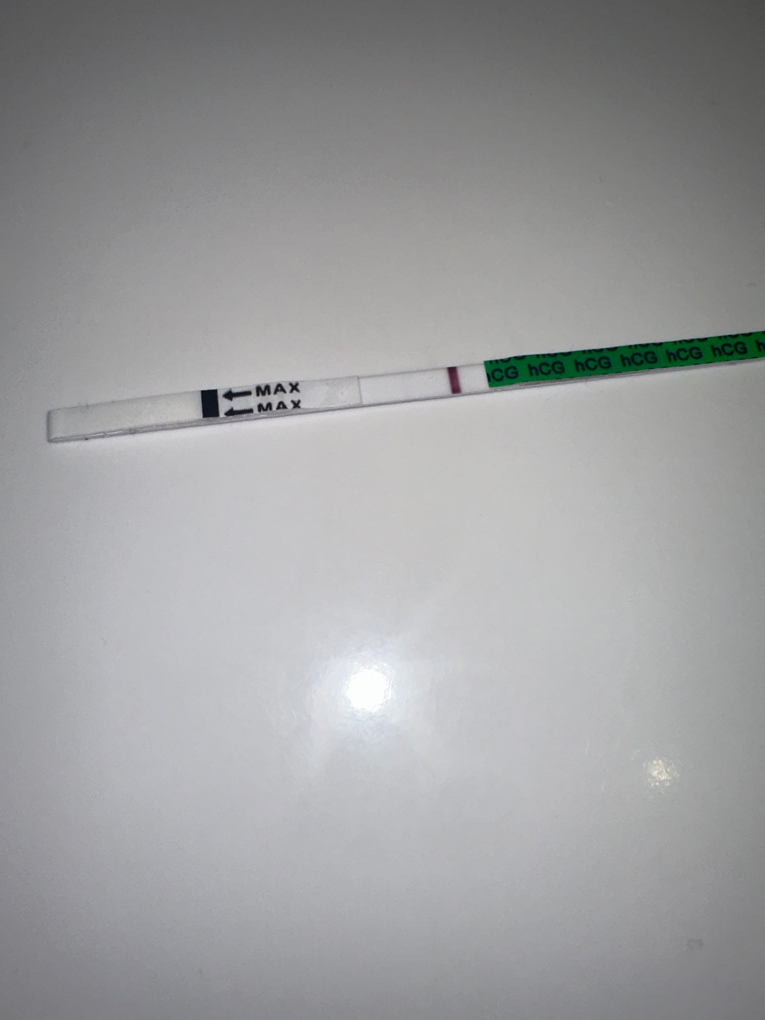 Noen som har opplevd å få en svak strek på babyplan men at streken er litt kuttet eller sterkere på yttersidene og svakere i midten? Var du gravid da?