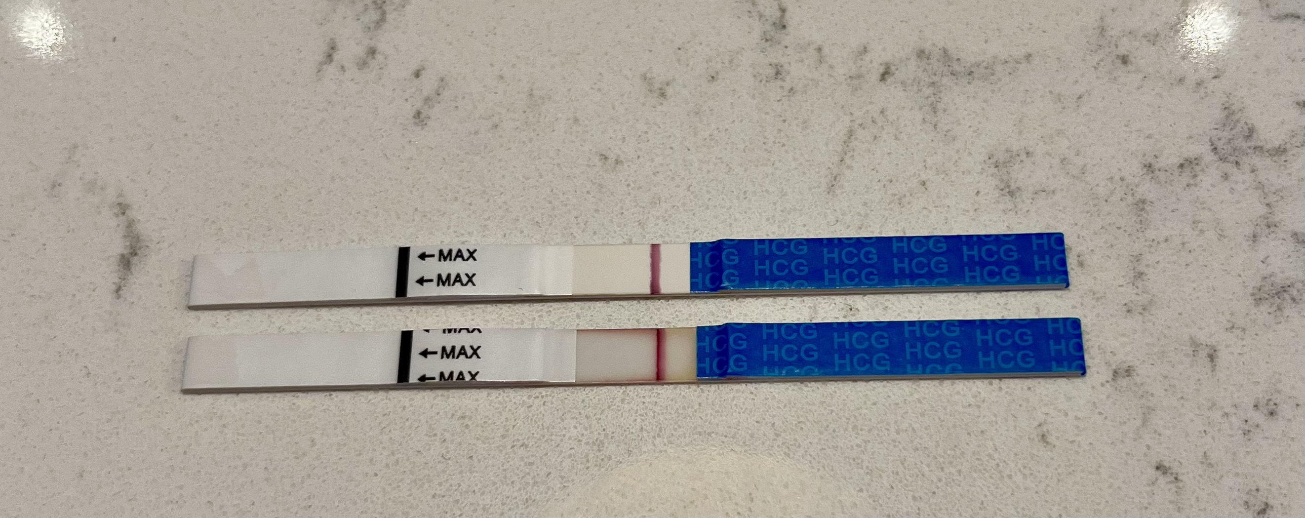 Sånn er det når man har prøvd lenge uten et eneste resultat!Det kan f.eks. skyldes ulik urinkonsentrasjon eller fargestoff i testene, men du kan jo også fort ha blitt gravid igjenSkjønner ikke helt hva som skjer her nøyaktig fire uker etter medisinsk abort etter MA. Hadde eggløsningsslim for ca 2 uker siden. G-testen har nettopp blitt blenda (trodde jeg). Føler temperatur kurven min er helt på bærtur, men føler jo kanskje at streken på dagens test (nederst) er mer synlig i forhold til gårdagens (øverst). Noen som har noen tanker?![]()