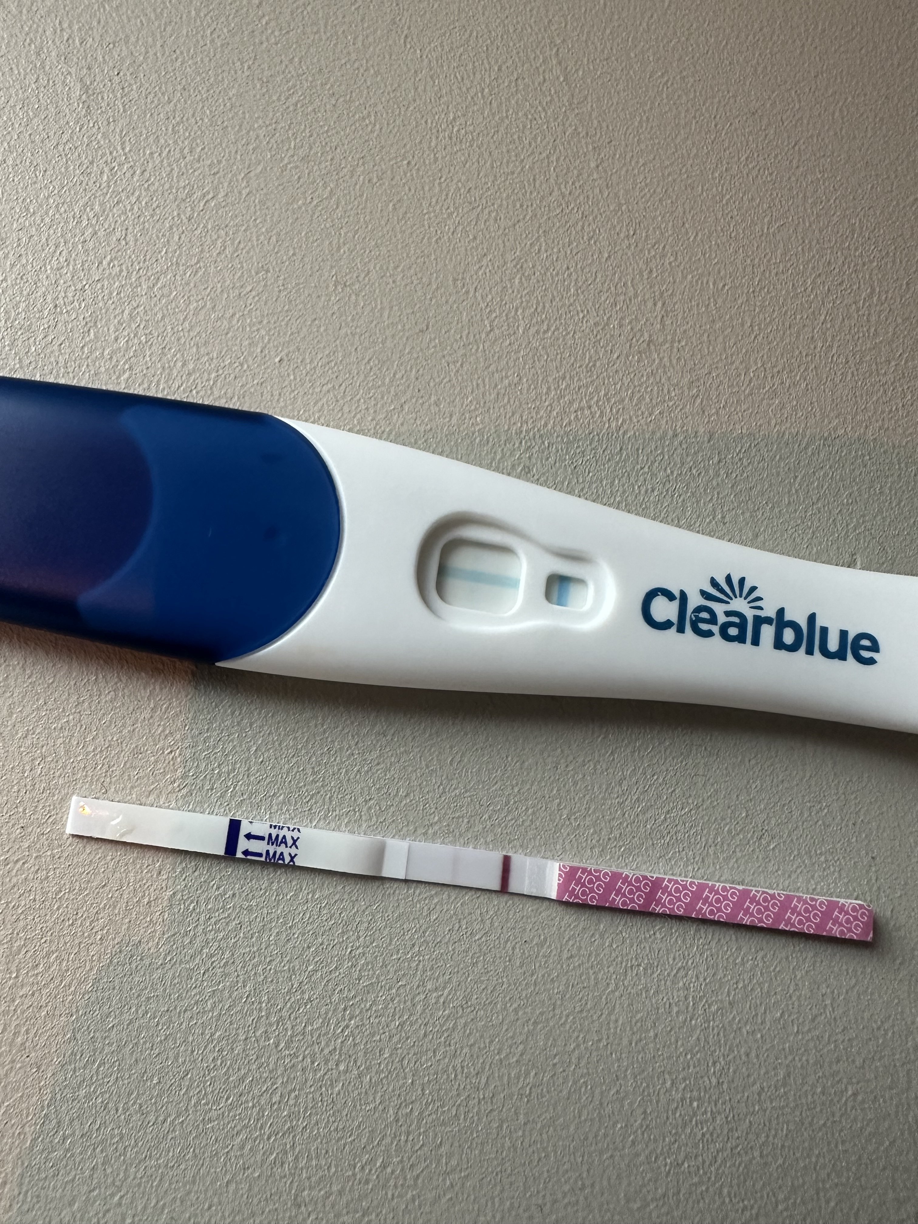 Takk dereSynes fargestoffet på testen ser rart ut, ville kanskje ha tatt en ny. Krysser fingre for deg![]()