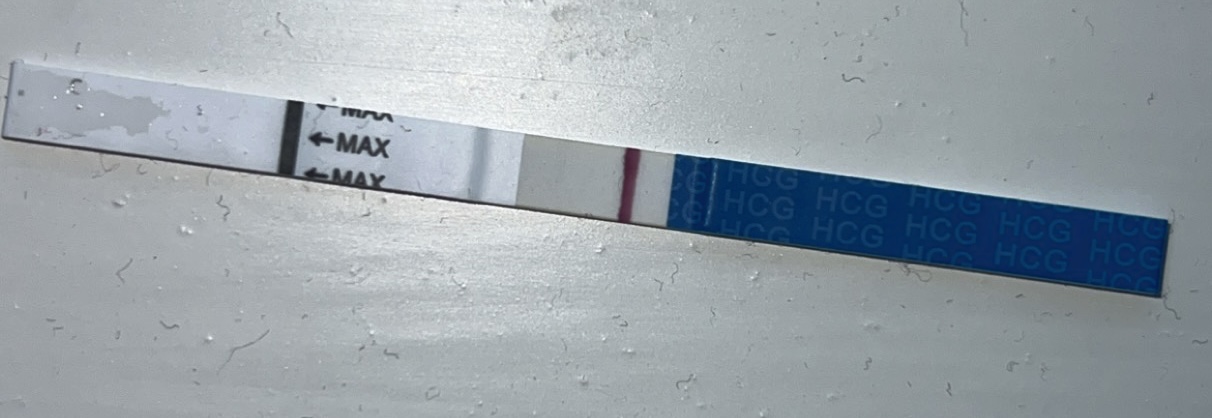 Bakgrunnen før denne testen er at jeg begynte å spotte 3 ish dager før mens, de to påfølgende dagene så blødde jeg friskt blod så gikk det over til spotting igjen? Å ga seg en dag tidligere enn min mens pleier? Så tok en test, dette ble utfallet.. får vel bare vente å se de neste dagene :rolleyes: :Heartpink