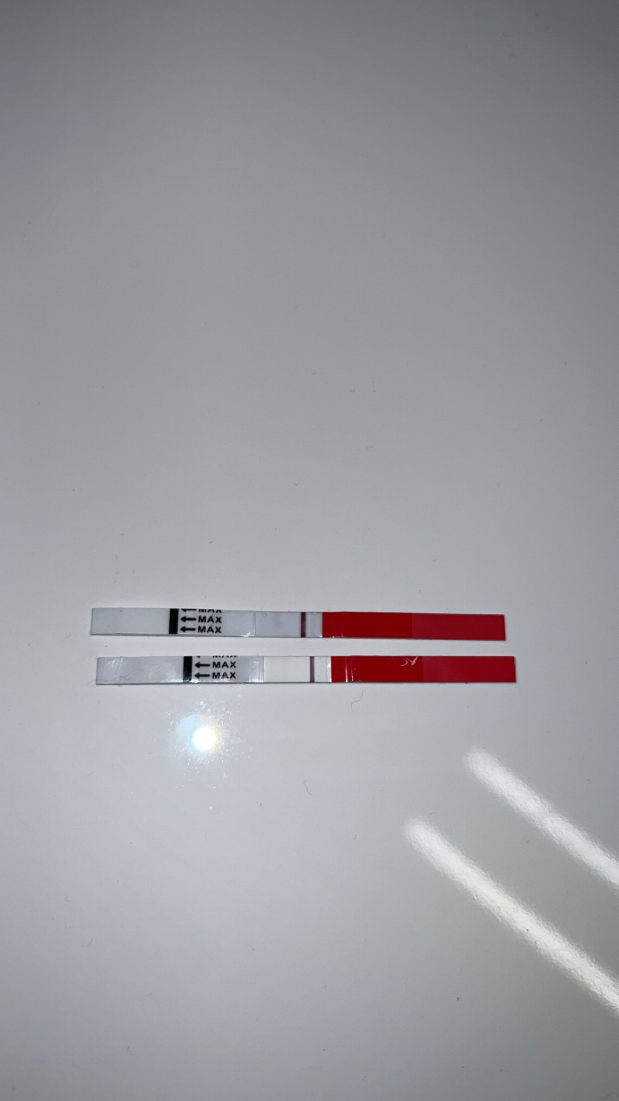 Synes den øverste var litt tykk men jeg kan skimte en strek på den nederste også! Har du tatt flere i dag?
